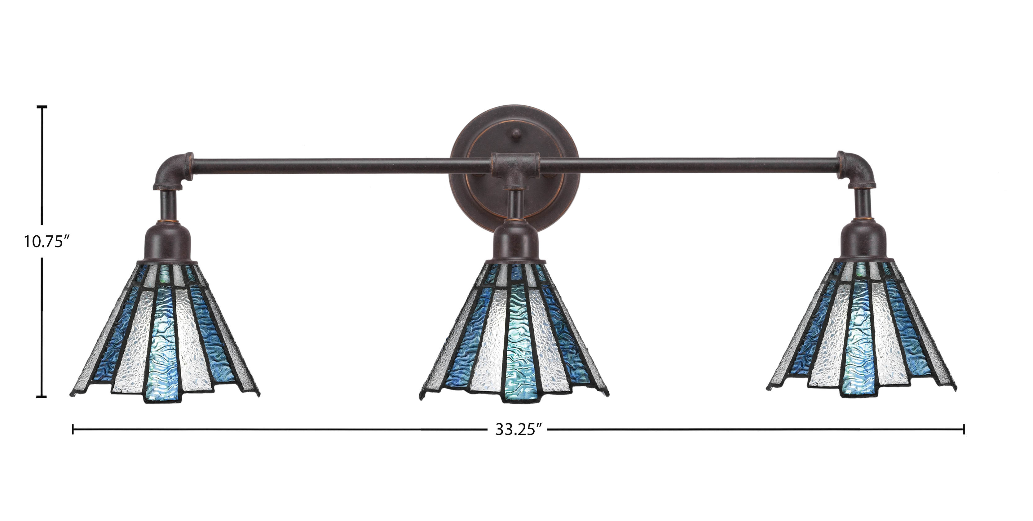 Toltec Lighting 183-DG-9325 Vintage 3 Light Bath Bar, Dark Granite Finish, 7″ Sea Ice Art Glass