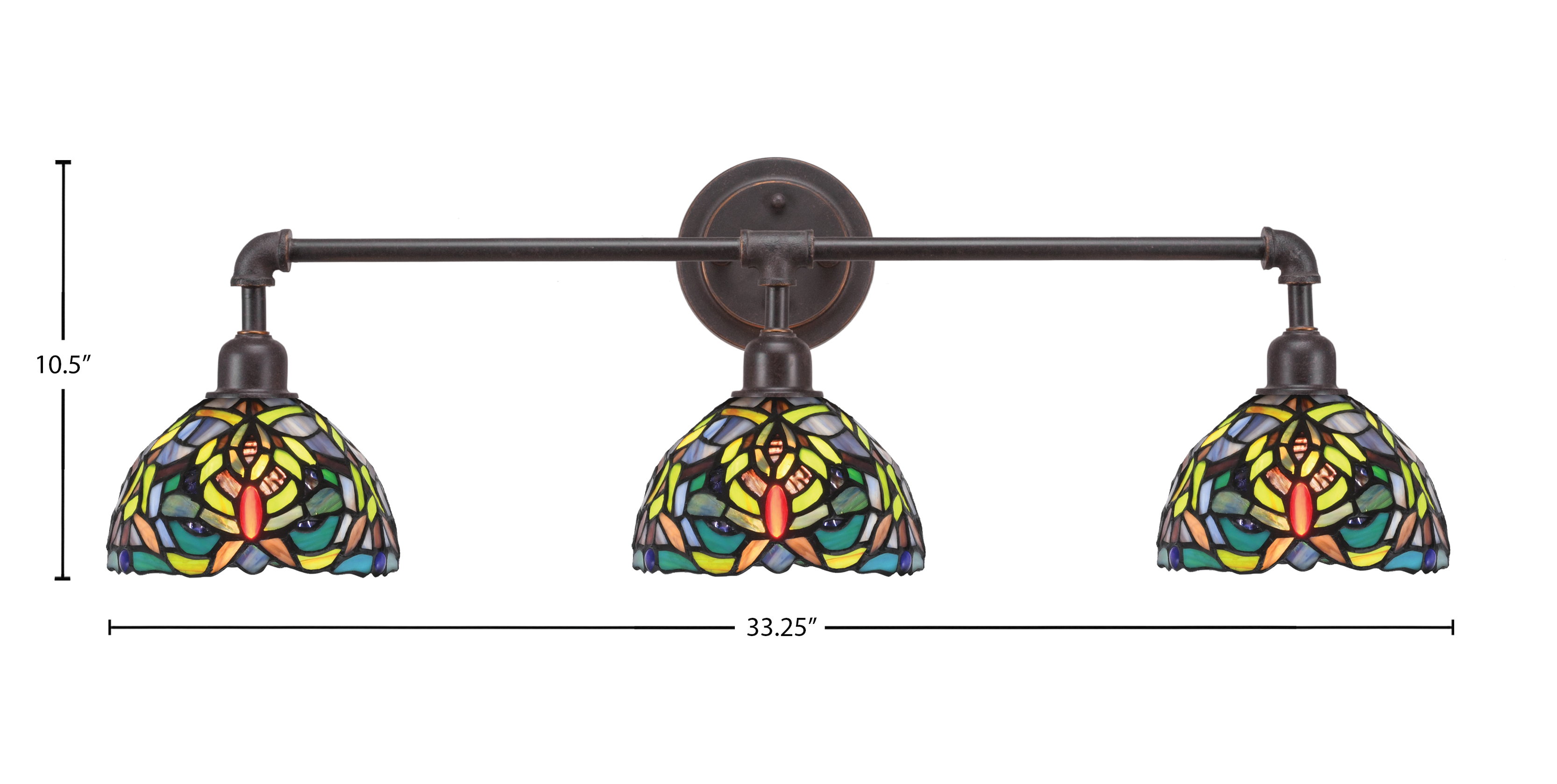 Illuminate Your Bathroom With The Stunning Vintage 3 Light Bath Bar, Showcased In A Rich Dark Granite Finish. Each Fixture Is Adorned With Beautiful 7″ Kaleidoscope Art Glass, Adding A Unique Touch Of Elegance And Style. Perfect For Creating A Warm And Inviting Atmosphere, This Bath Bar Combines Functionality With Timeless Charm.
