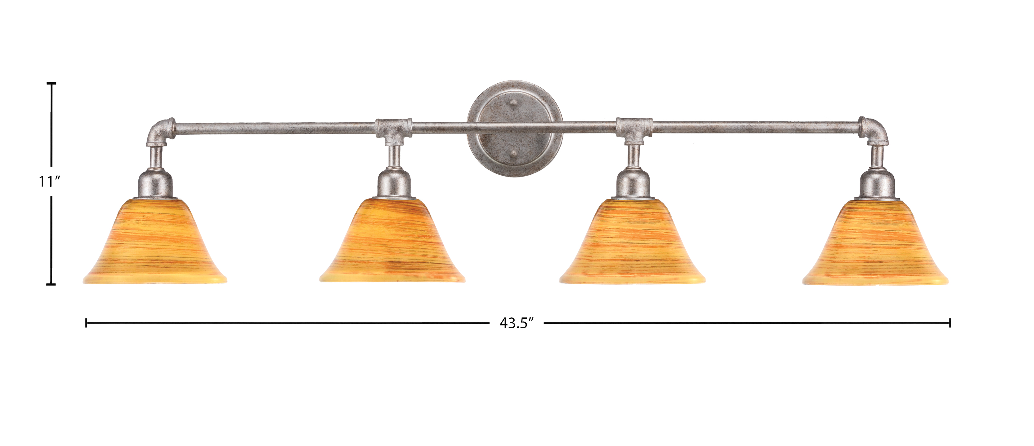 Toltec Lighting 184-AS-454 Vintage 4 Light Bath Bar, Aged Silver Finish, 7″ Firre” Saturn Glass