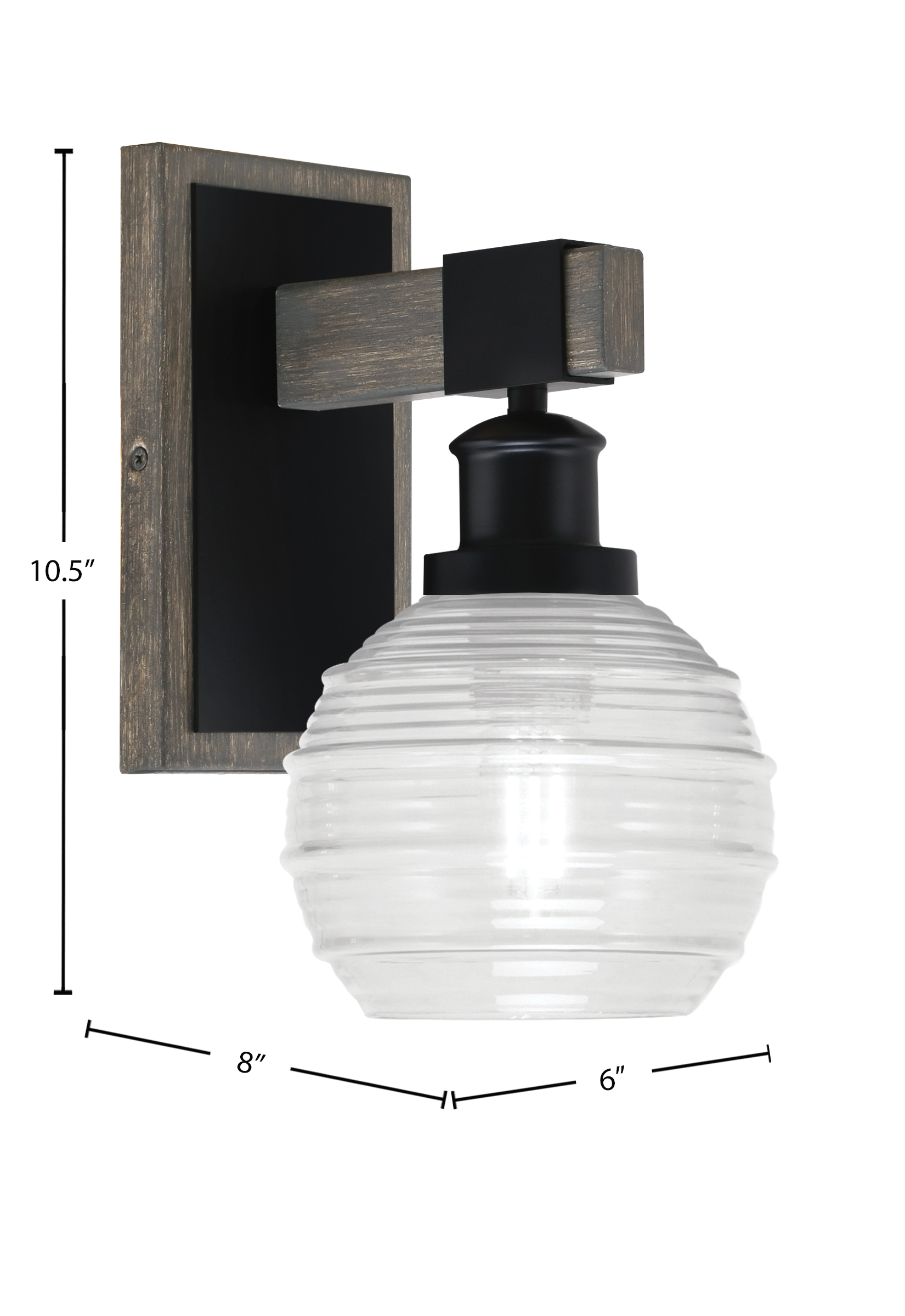 Toltec Lighting 1841-MBDW-5110 Tacoma Wall Sconce, Matte Black & Painted Distressed Wood-Look Metal Finish, 6″ Clear Ribbed Glass