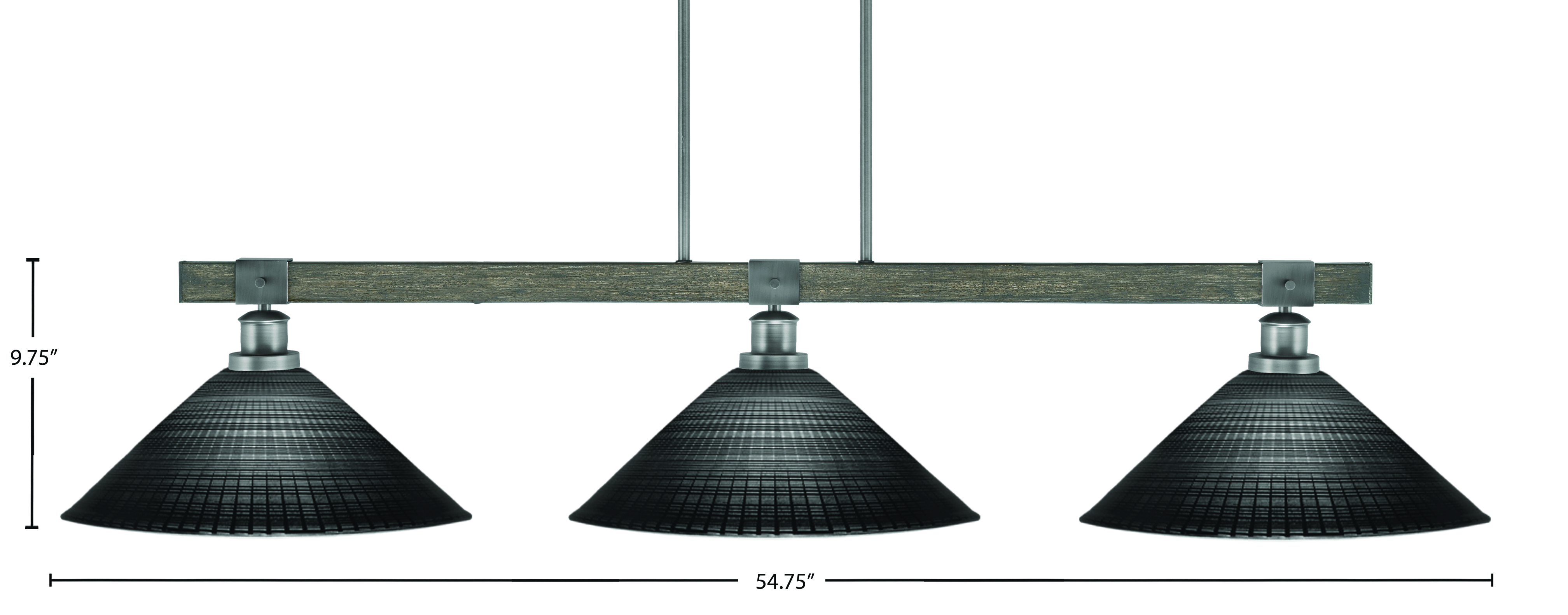 Toltec Lighting 1863-GPDW-4019 Tacoma 3 Light Bar, Graphite & Painted Distressed Wood-look Metal Finish, 16″ Black Matrix Glass