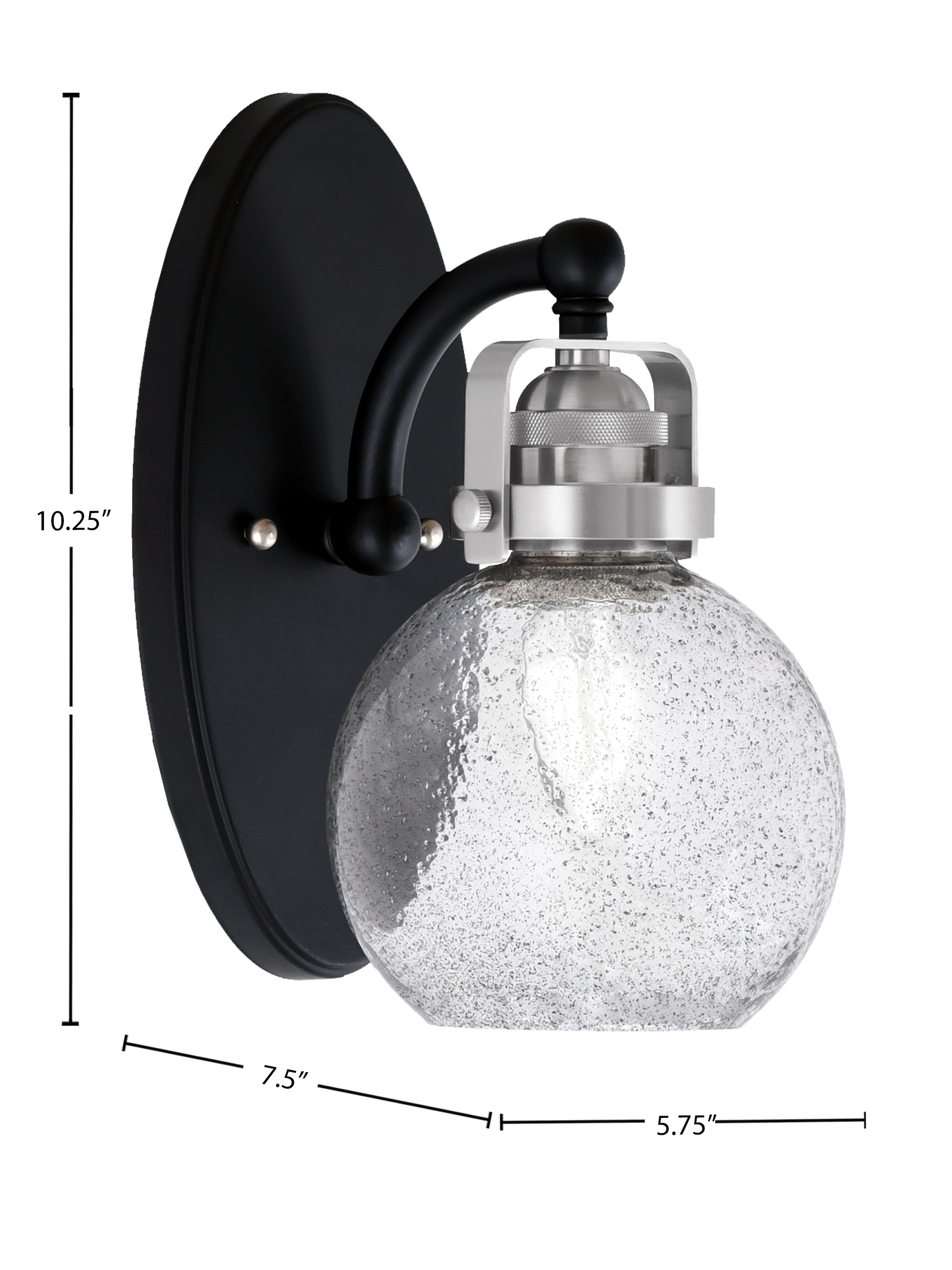 Illuminate Your Space with the Easton 1 Light Wall Sconce, a Stunning Fixture that Perfectly Blends Modern Elegance and Industrial Charm. Featuring a Beautiful Matte Black and Brushed Nickel Finish, This Sconce is Designed to Complement Any Room Décor. The 5.75″ Smoke Bubble Glass Creates a Soft, Inviting Glow, Making It the Perfect Addition to Your Home or Office.