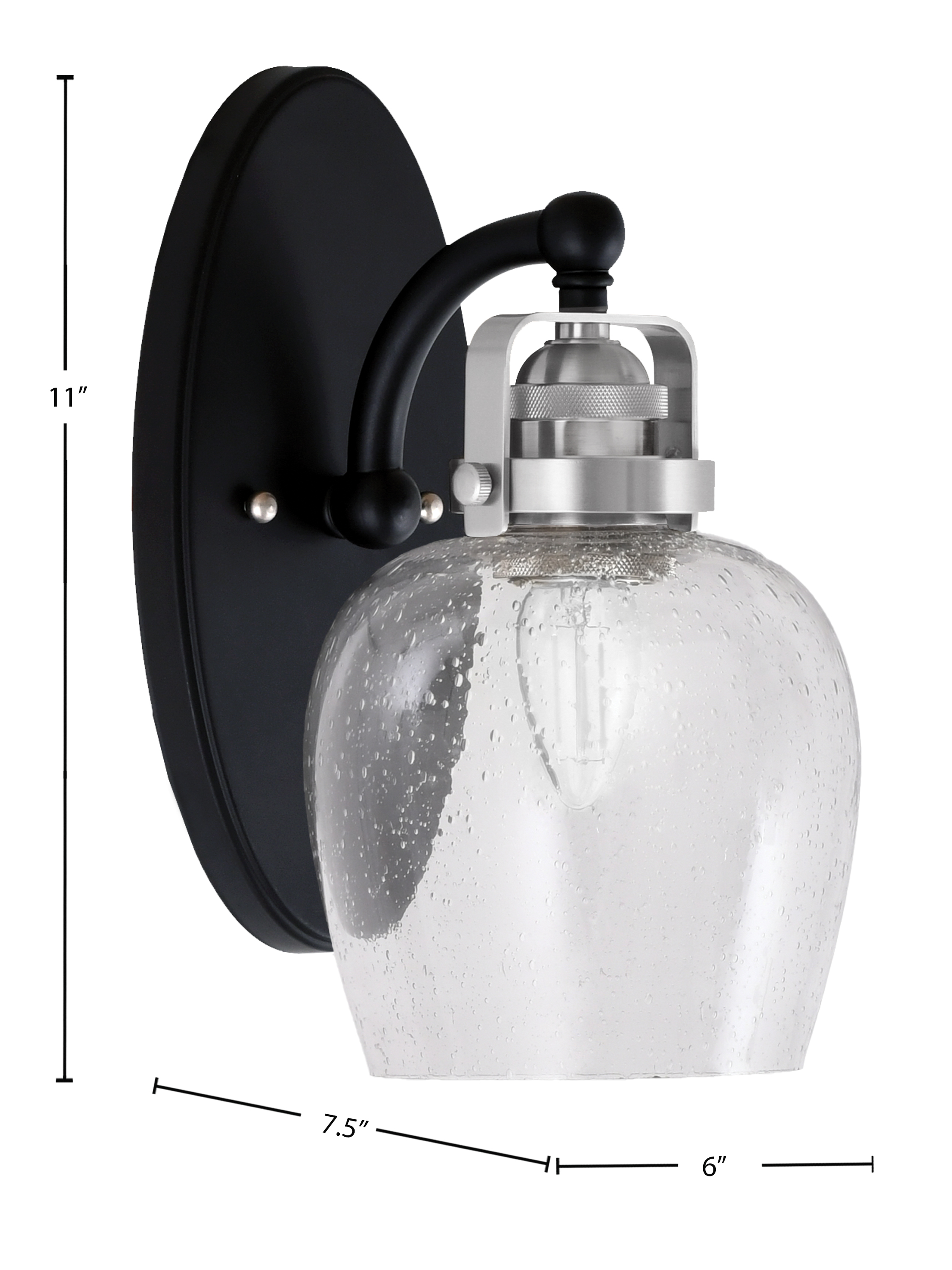 Illuminate Your Space With The Easton 1 Light Wall Sconce, Perfectly Shown In A Stylish Matte Black & Brushed Nickel Finish. This Stunning Fixture Features A 6″ Clear Bubble Glass That Adds A Touch Of Elegance And Sophistication To Any Room. Ideal For Hallways, Living Areas, Or Bedrooms, The Easton Sconce Blends Modern Design With Timeless Charm.