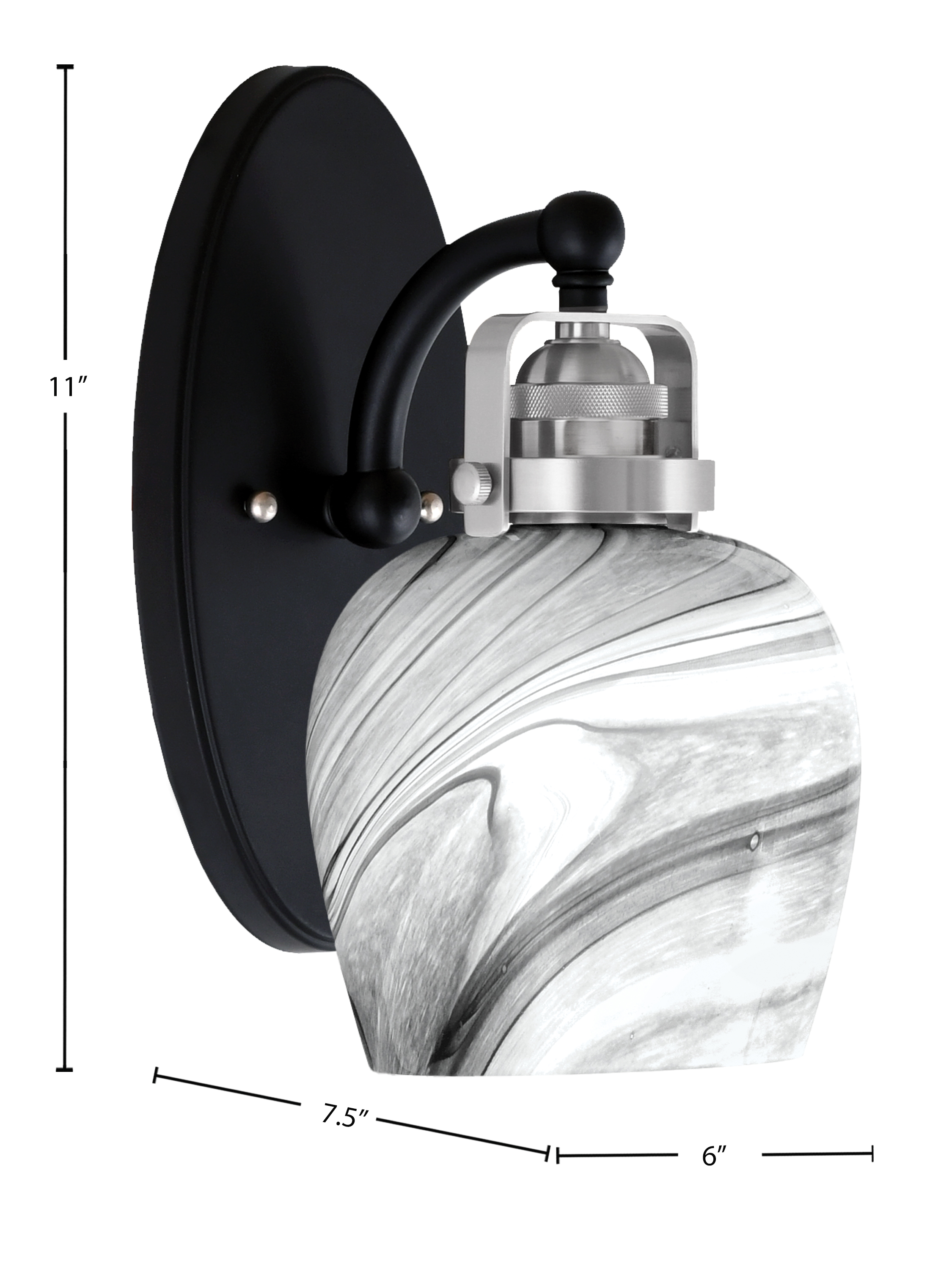 Toltec Lighting 1931-MBBN-4819 Easton Wall Sconce, Matte Black & Brushed Nickel Finish, 6″ Onyx Swirl Glass