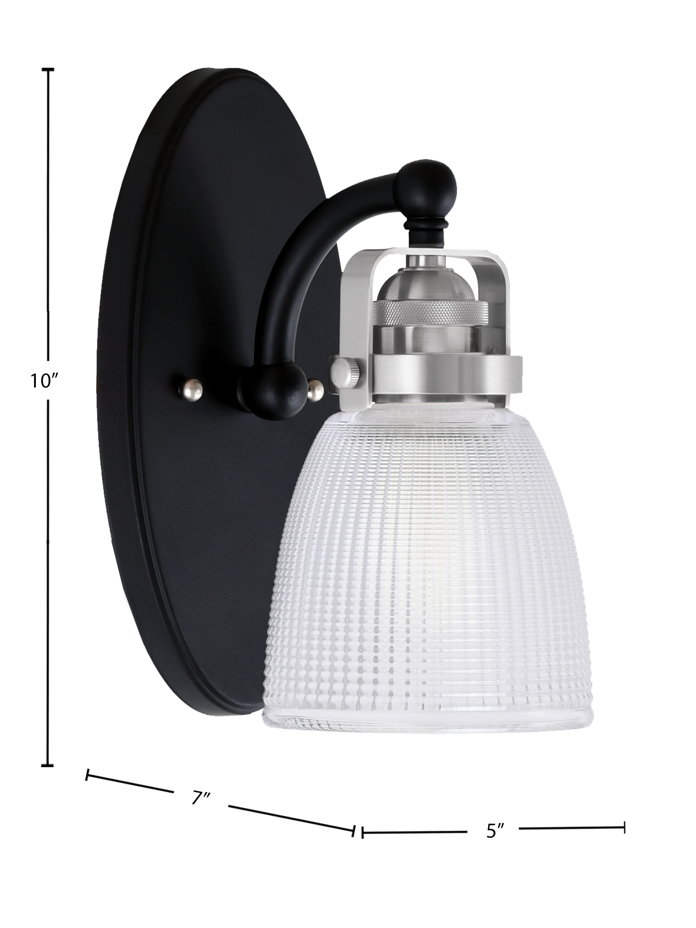 Illuminate Your Space With The Stunning Easton 1 Light Wall Sconce, Featuring A Striking Matte Black And Brushed Nickel Finish That Adds A Touch Of Modern Elegance. The 5″ Clear Ribbed Glass Design Provides A Beautiful Diffusion Of Light, Creating A Warm And Inviting Atmosphere In Any Room. Perfect For Hallways, Living Rooms, Or Bedrooms, This Wall Sconce Combines Style And Functionality To Enhance Your Homedecor.
