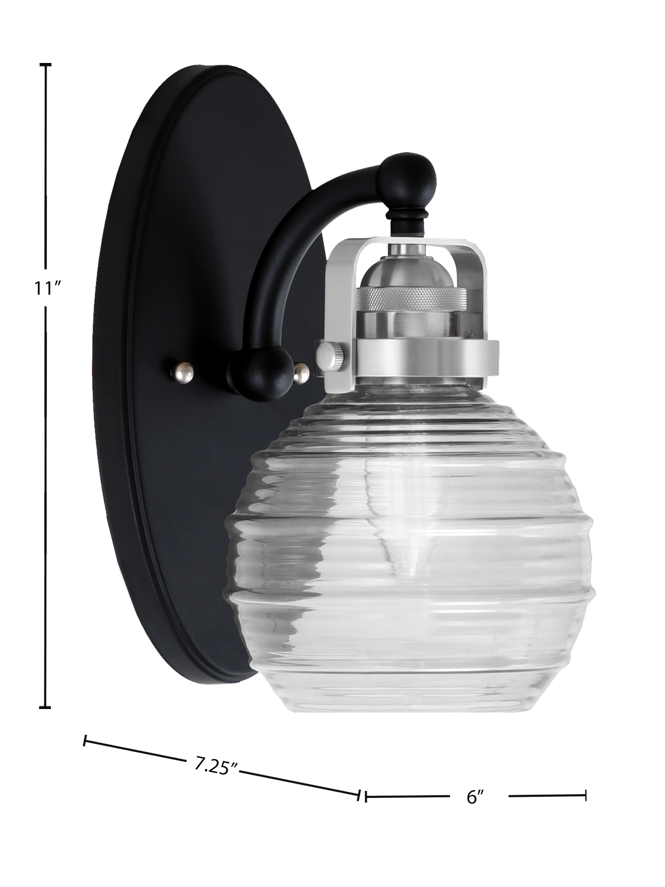 Toltec Lighting 1931-MBBN-5110 Easton Wall Sconce, Matte Black & Brushed Nickel Finish, 6″ Clear Ribbed Glass