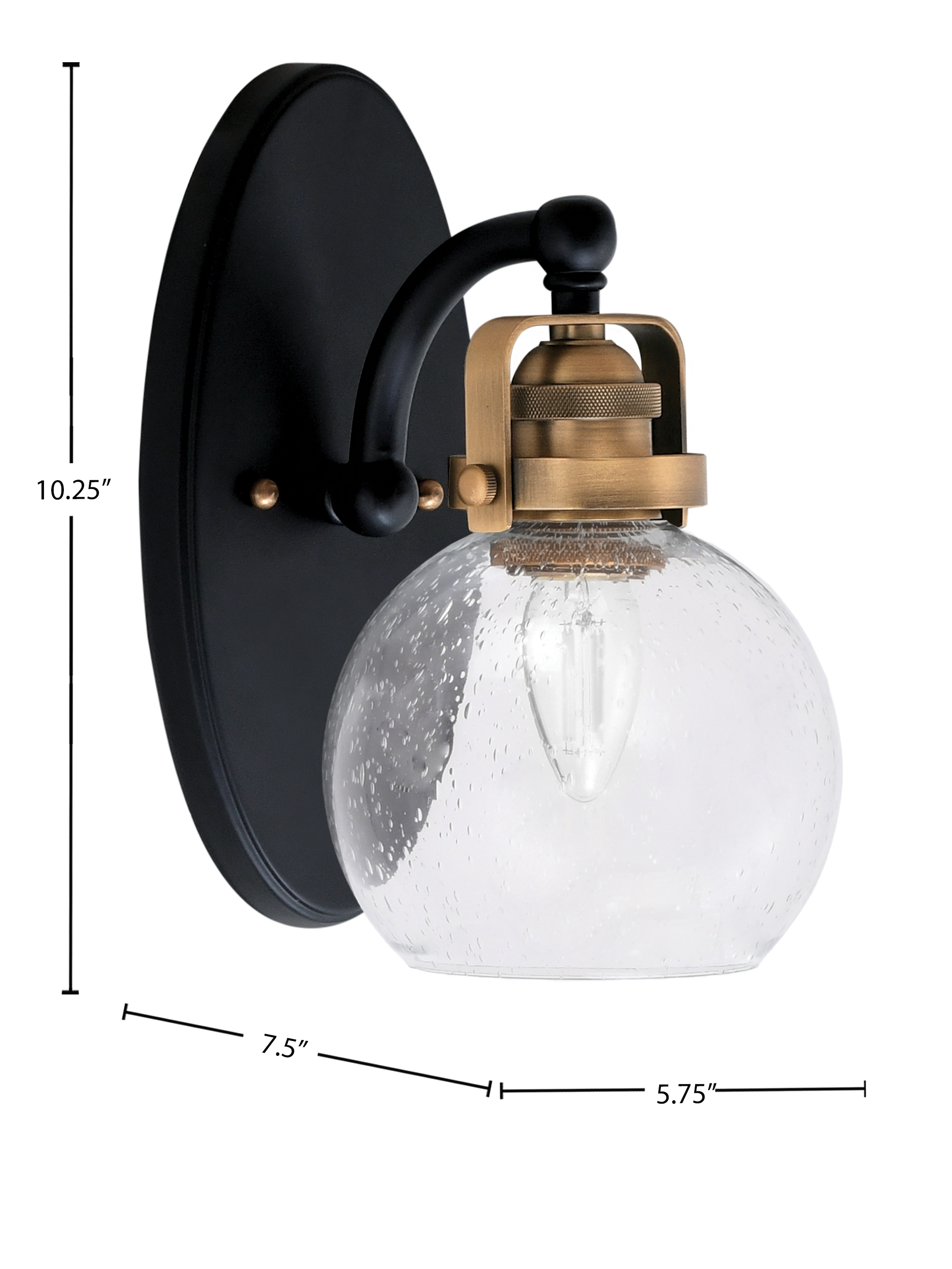 Illuminate Your Space With The Easton 1 Light Wall Sconce, Featuring A Striking Matte Black And Brass Finish. This Elegant Design Showcases A 5.75″ Clear Bubble Glass Shade That Exudes Modern Charm While Offering A Warm Glow. Perfect For Any Room, This Sconce Adds A Touch Of Sophistication And Style To Your Homedecor.