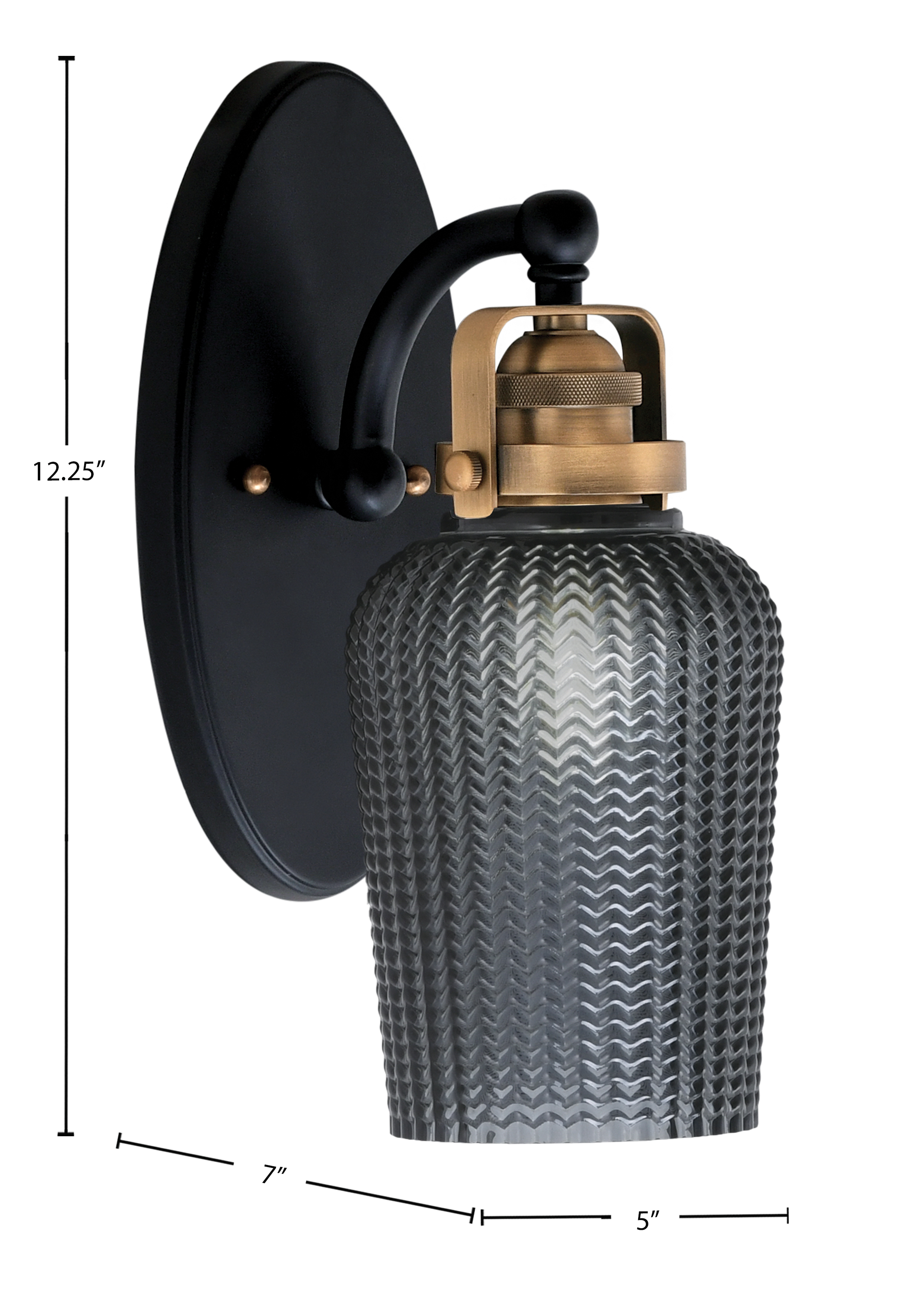 Toltec Lighting 1931-MBBR-4252 Easton Wall Sconce, Matte Black & Brass Finish, 5″ Smoke Textured Glass