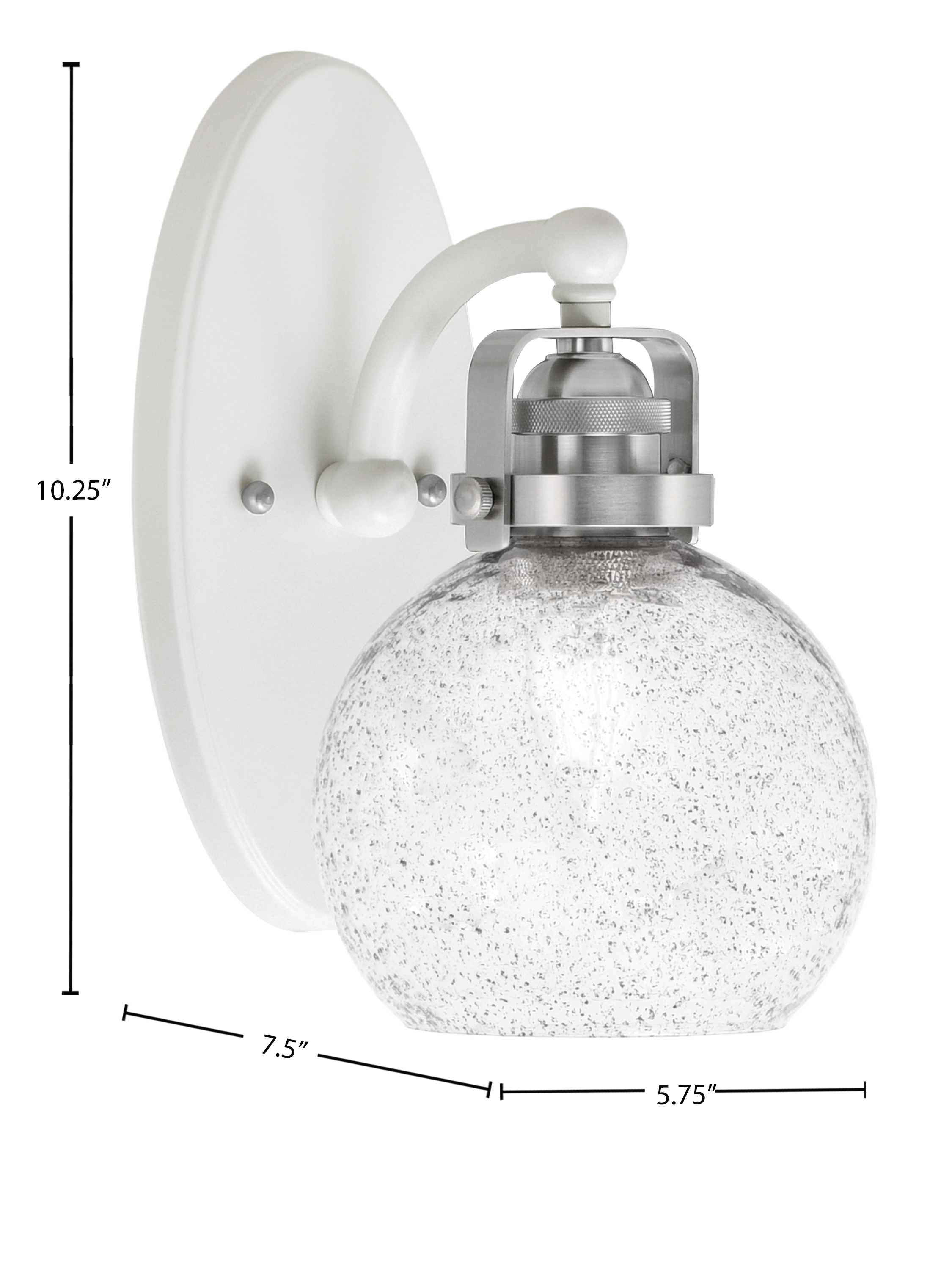 Illuminate Your Space With The Easton 1 Light Wall Sconce, Featuring A Stunning White And Brushed Nickel Finish That Adds A Touch Of Elegance To Any Room. The Unique 5.75″ Smoke Bubble Glass Creates A Warm And Inviting Glow, Perfect For Hallways, Living Rooms, Or Bedrooms. With Its Sleek Design And Premium Materials, This Sconce Is Not Just A Light Fixture, But A Statement Piece That Enhances Your Home”s Décor.