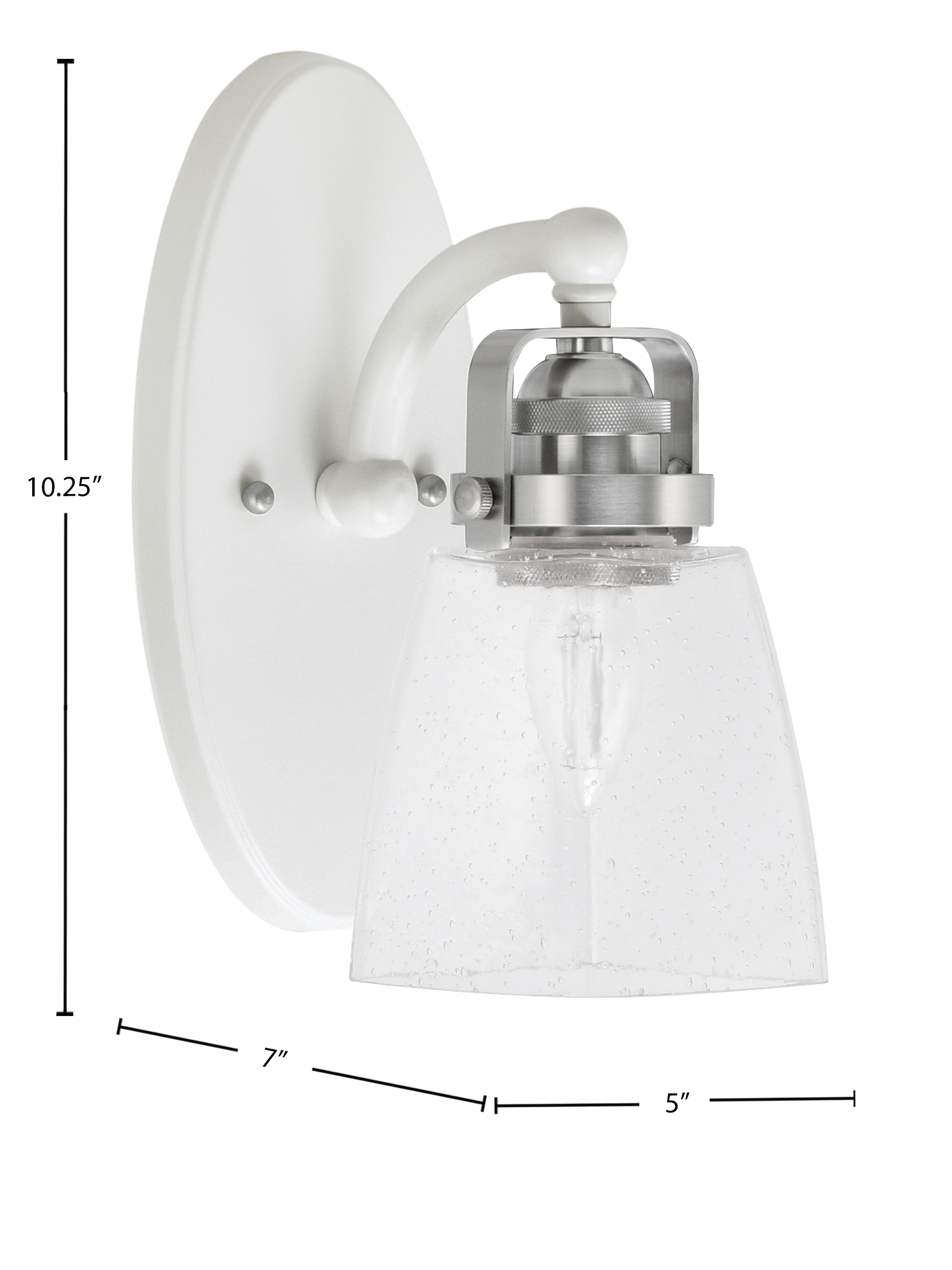 The Easton 1 Light Wall Sconce Features A Stylish White And Brushed Nickel Finish That Adds A Touch Of Modern Elegance To Any Space. The 4.5″ Square Clear Bubble Glass Provides A Unique Visual Texture And Projects A Warm, Inviting Glow. Ideal For Hallways, Living Rooms, Or As An Accent Piece, This Sconce Is Both Functional And Fashionable.