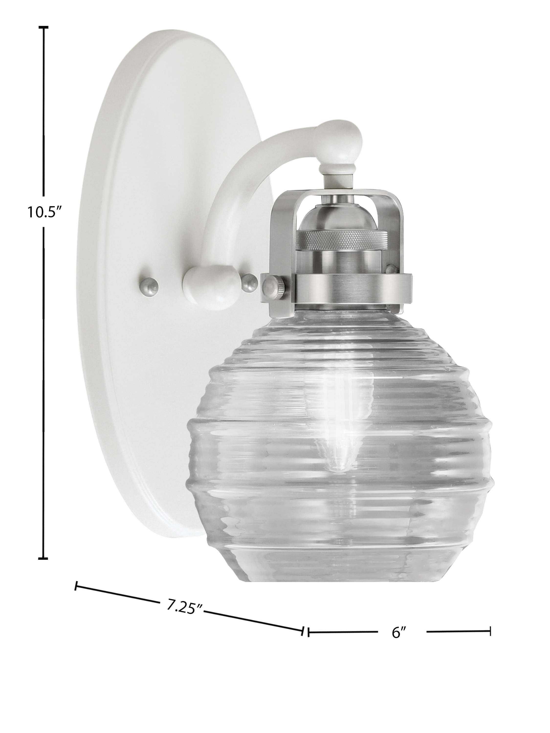 Toltec Lighting 1931-WHBN-5110 Easton Wall Sconce, White & Brushed Nickel Finish, 6″ Clear Ribbed Glass