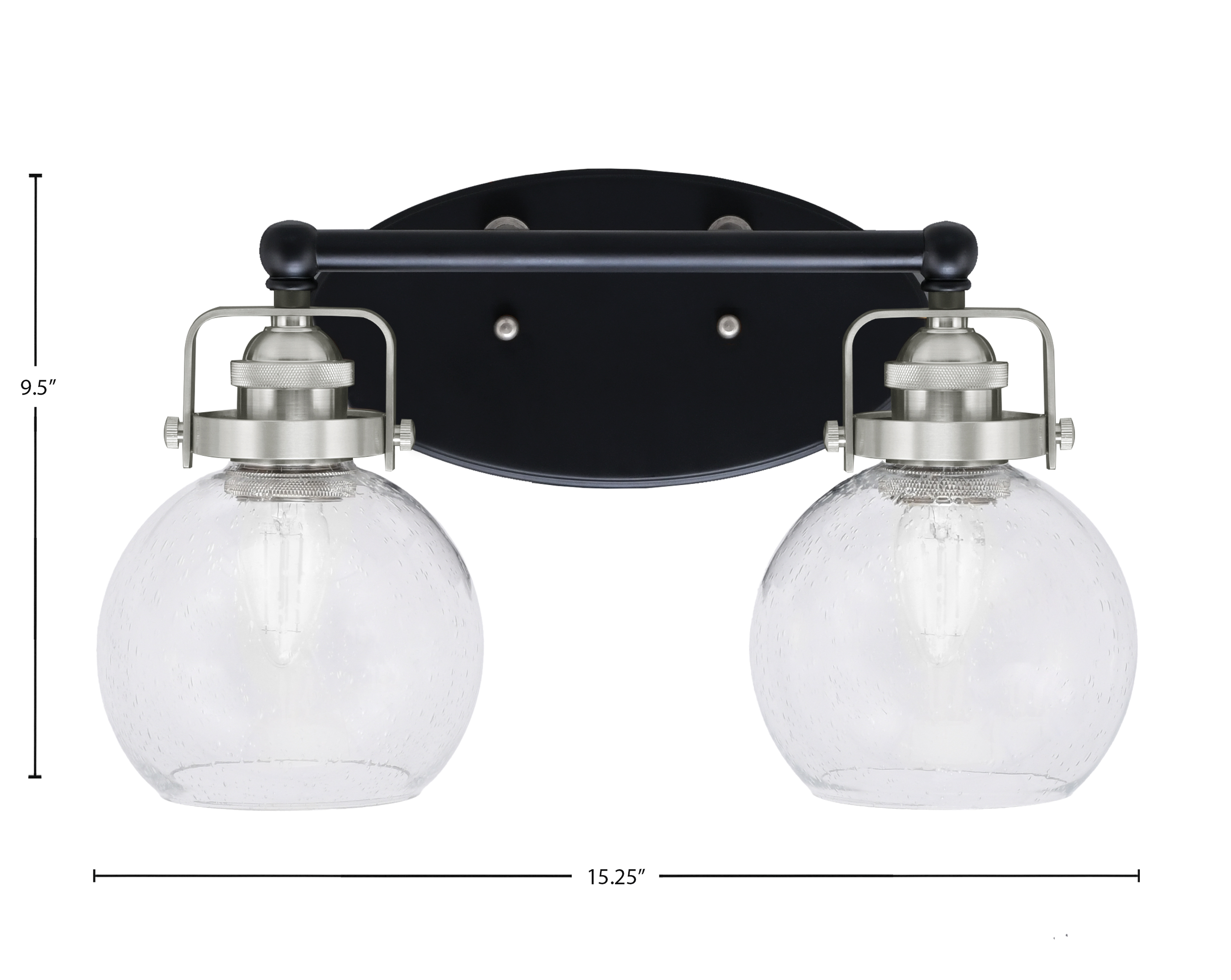 Toltec Lighting 1932-MBBN-4100 Easton 2 Light Bath Bar, Matte Black & Brushed Nickel Finish, 5.75″ Clear Bubble Glass