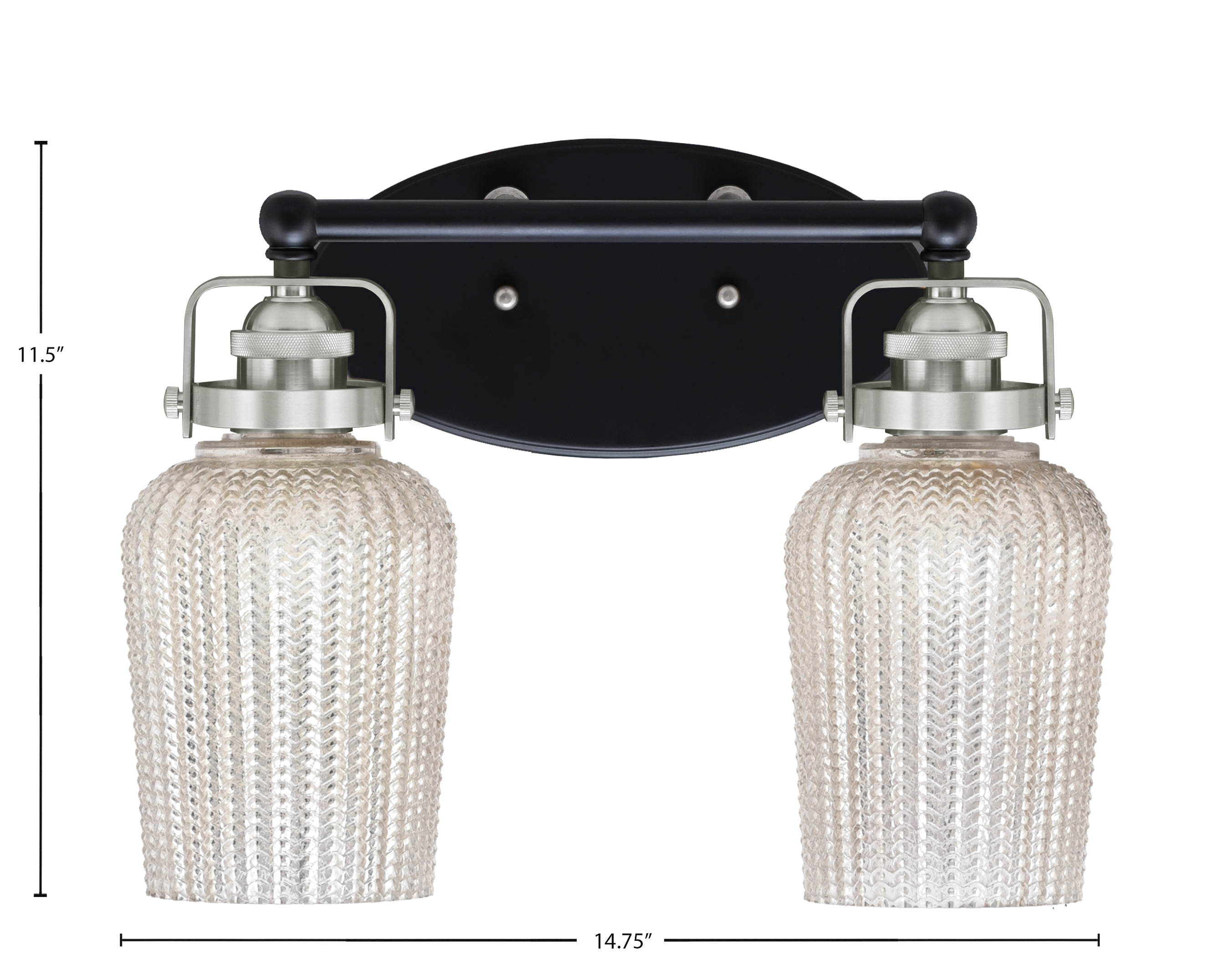 Toltec Lighting 1932-MBBN-4253 Easton 2 Light Bath Bar, Matte Black & Brushed Nickel Finish, 5″ Silver Textured Glass