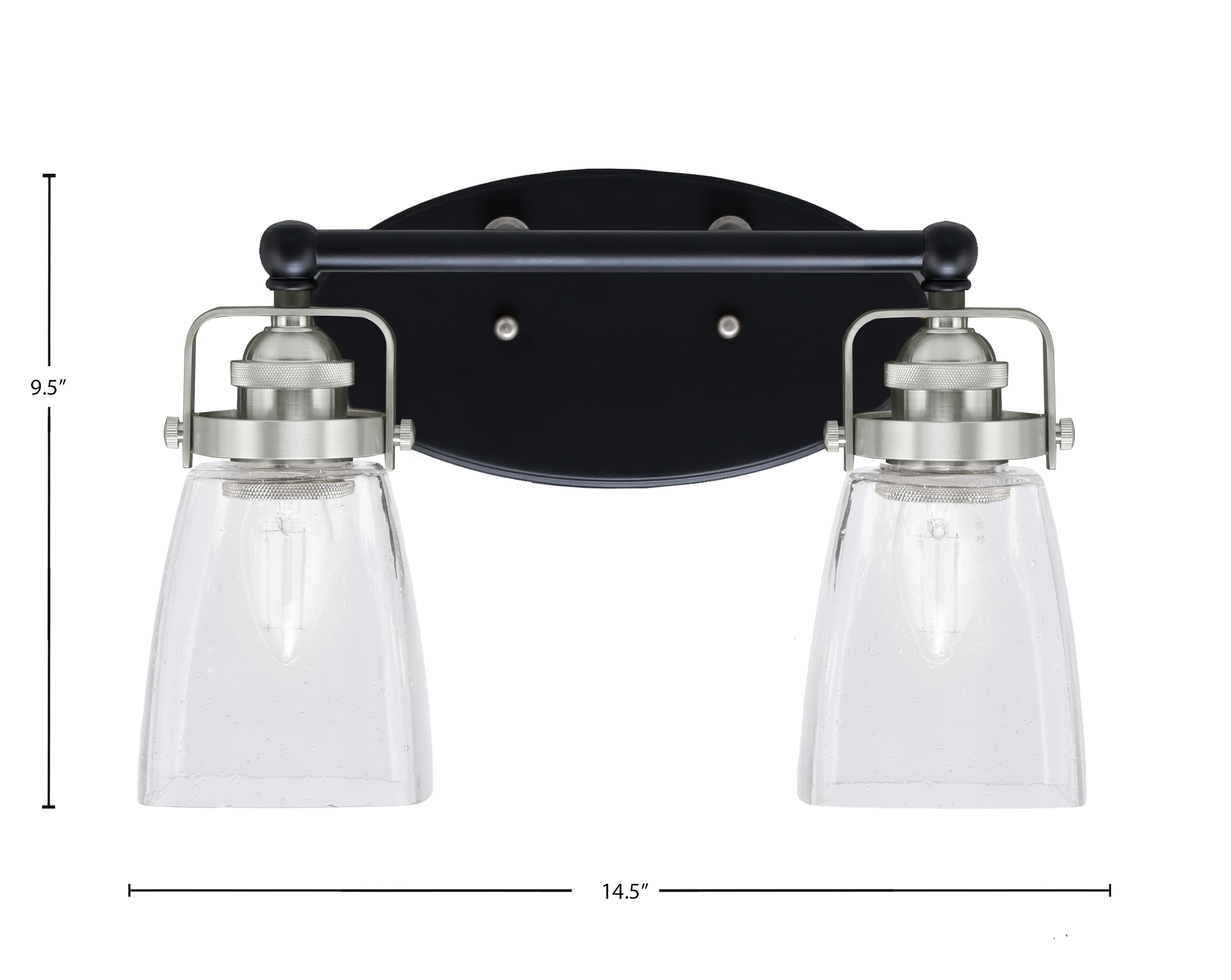 Toltec Lighting 1932-MBBN-461 Easton 2 Light Bath Bar, Matte Black & Brushed Nickel Finish, 4.5″ Square Clear Bubble Glass