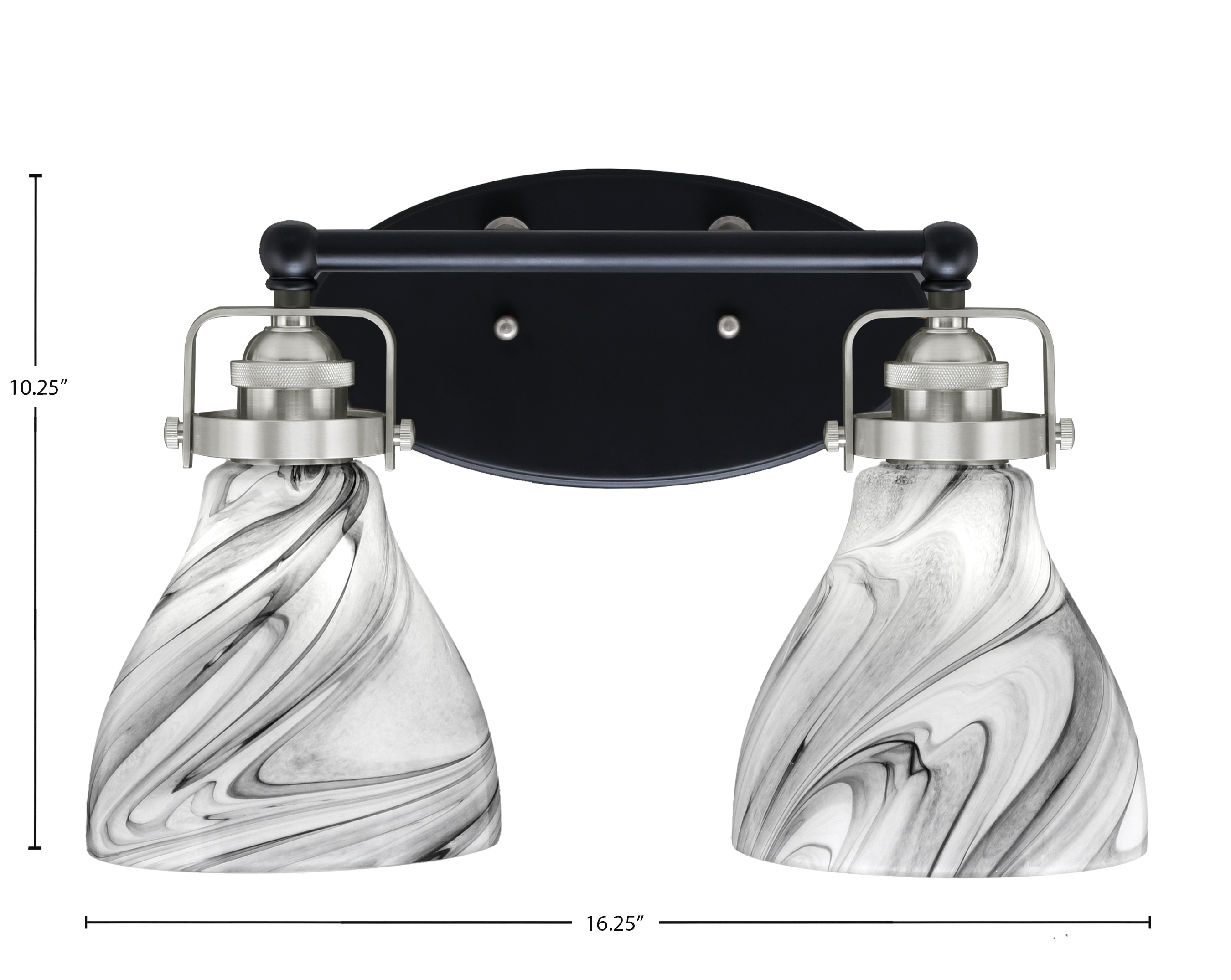 Toltec Lighting 1932-MBBN-4769 Easton 2 Light Bath Bar, Matte Black & Brushed Nickel Finish, 6.25″ Onyx Swirl Glass