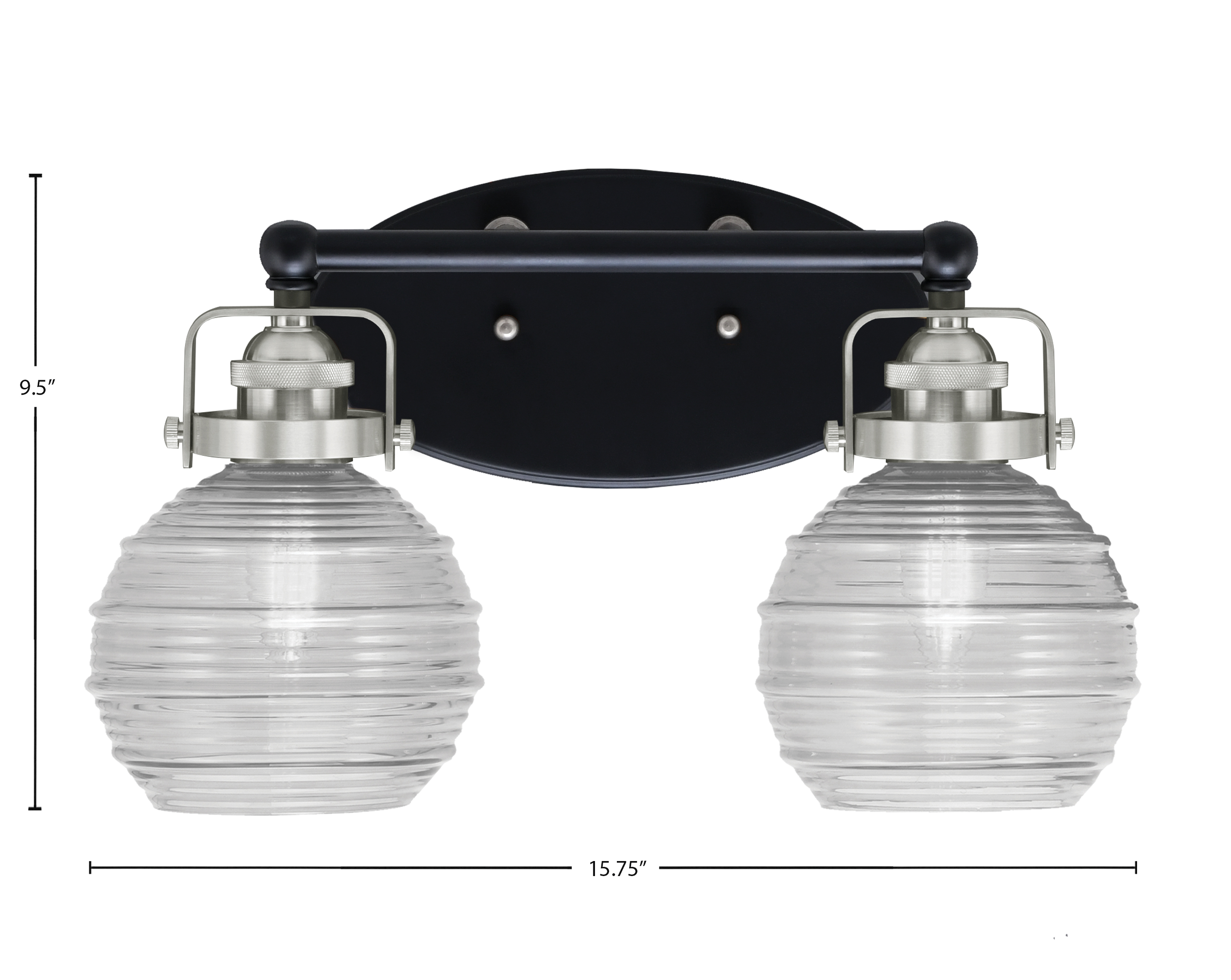 Toltec Lighting 1932-MBBN-5110 Easton 2 Light Bath Bar, Matte Black & Brushed Nickel Finish, 6″ Clear Ribbed Glass