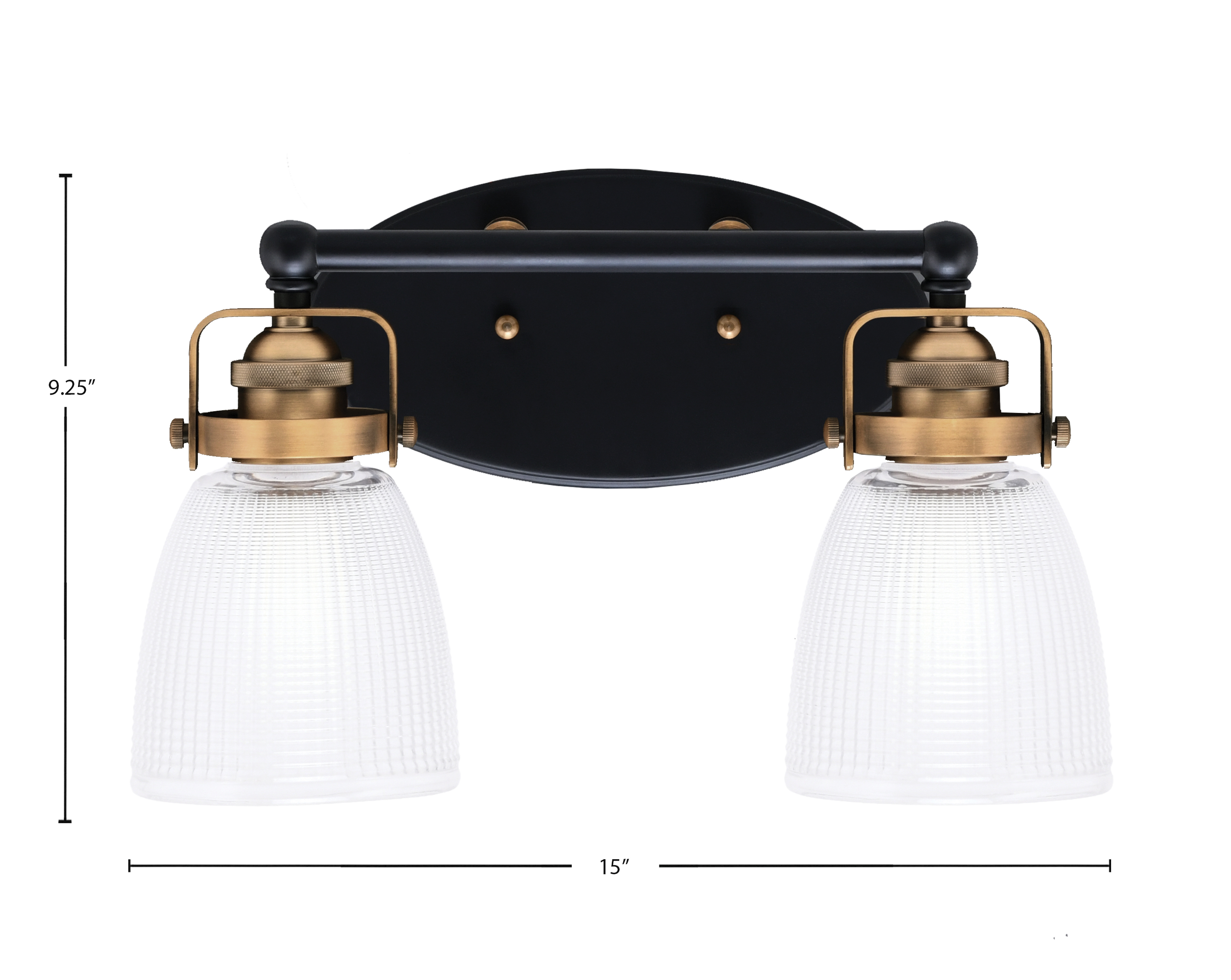 Introducing the Easton 2 Light Bath Bar, Showcased In A Stunning Matte Black & Brass Finish. This Elegant Fixture Features 5″ Clear Ribbed Glass, Providing A Perfect Blend Of Vintage Charm And Modern Style. Elevate Your Bathroom Ambiance With This Sophisticated Lighting Solution That Combines Functionality And Aesthetic Appeal.