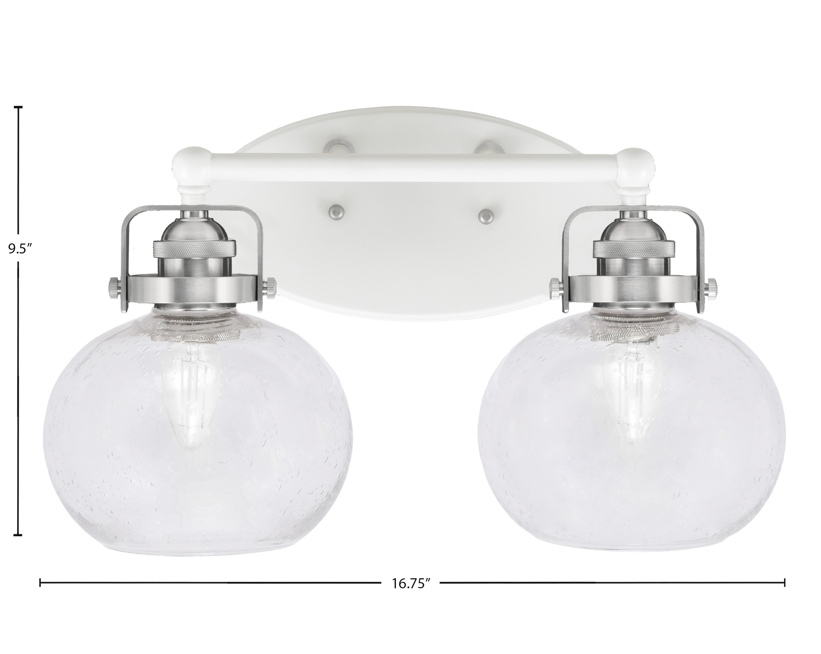 Toltec Lighting 1932-WHBN-202 Easton 2 Light Bath Bar, White & Brushed Nickel Finish, 7″ Clear Bubble Glass