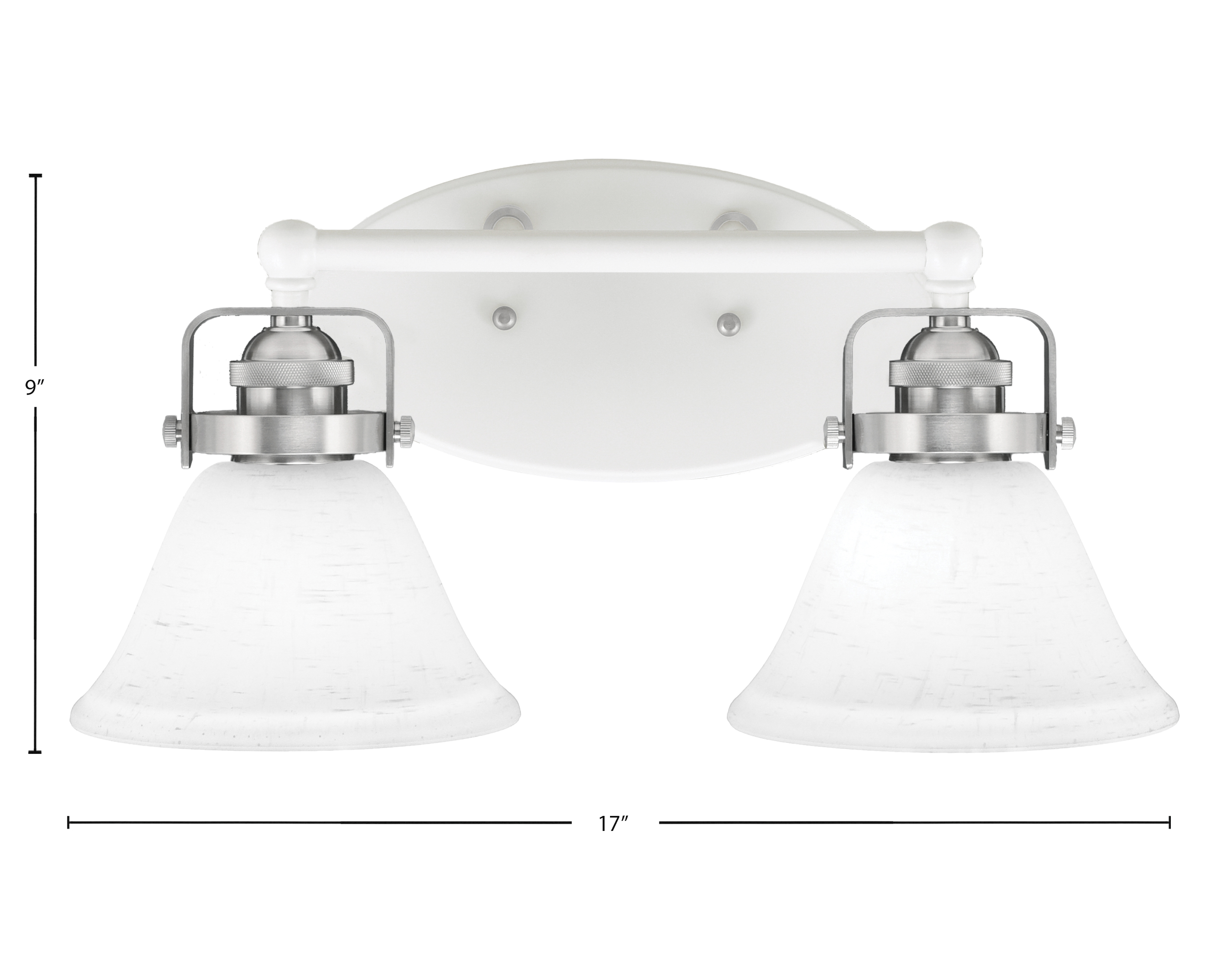 Toltec Lighting 1932-WHBN-311 Easton 2 Light Bath Bar, White & Brushed Nickel Finish, 7″ White Muslin Glass