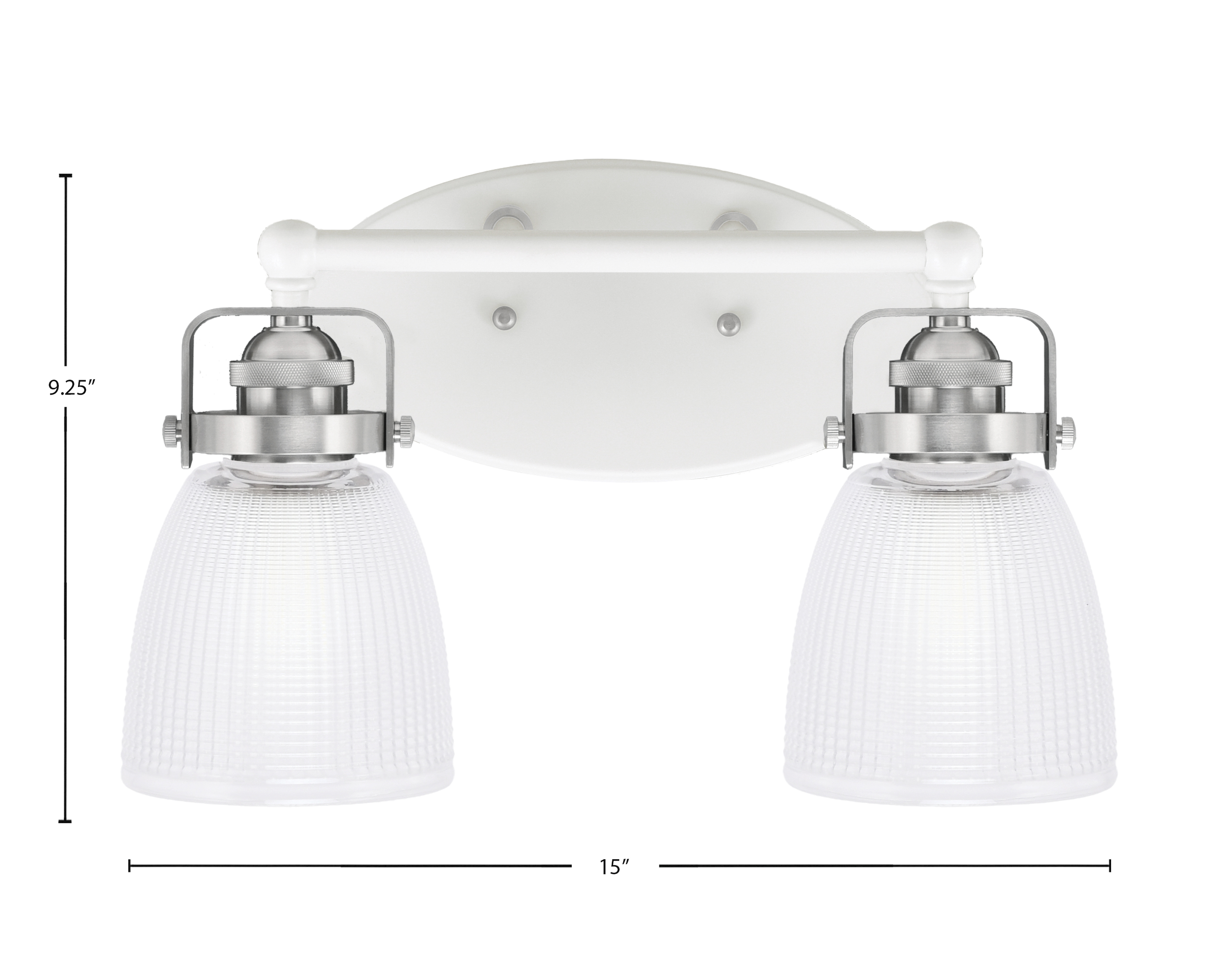 Illuminate Your Space With The Easton 2 Light Bath Bar, A Stunning Fixture That Combines Style And Functionality. Featuring A White And Brushed Nickel Finish, This Elegant Lighting Solution Enhances Any Bathroom Decor While Providing Ample Illumination. The 5″ Clear Ribbed Glass Shades Add A Touch Of Sophistication, Allowing For A Beautiful Diffusion Of Light.