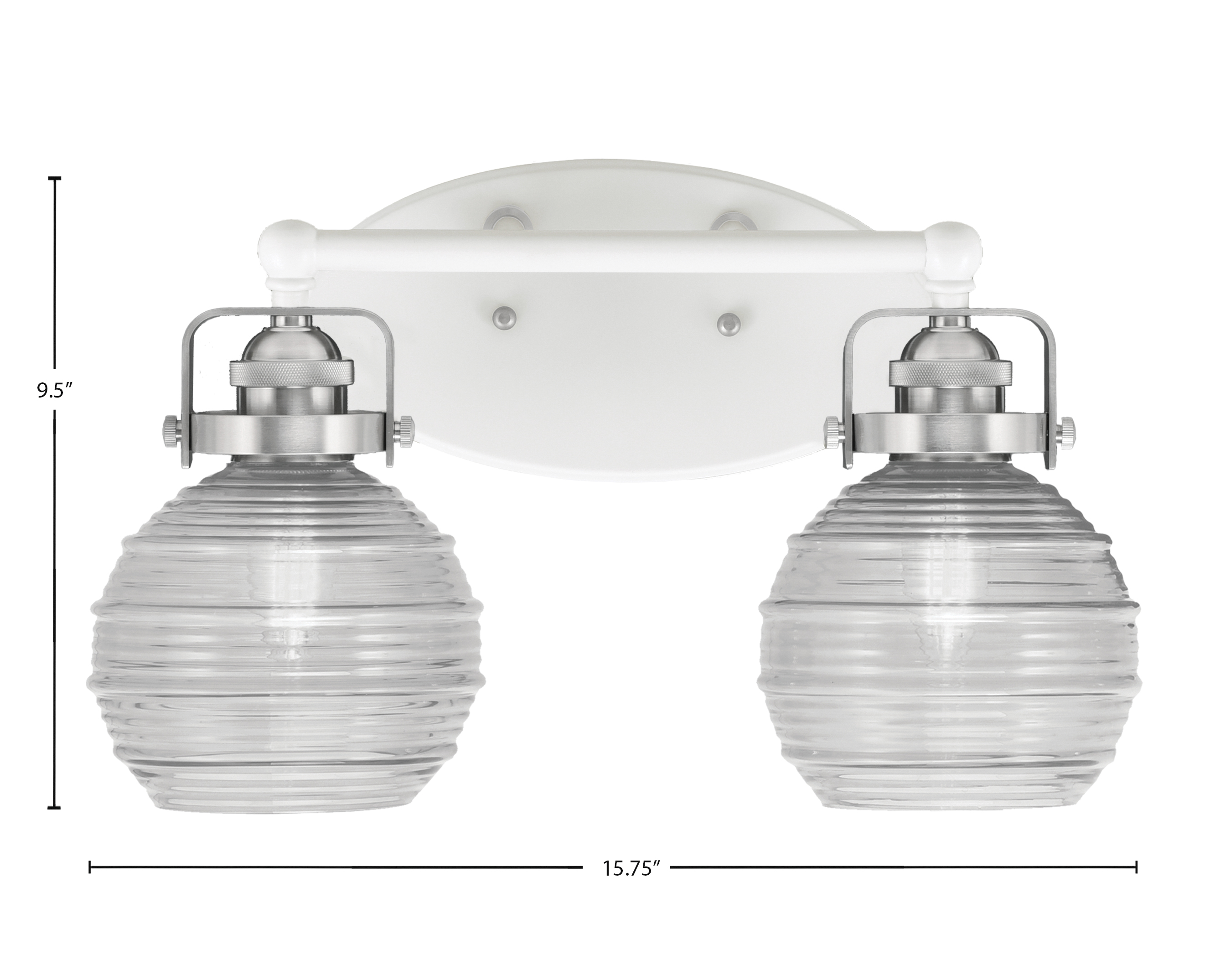 Toltec Lighting 1932-WHBN-5110 Easton 2 Light Bath Bar, White & Brushed Nickel Finish, 6″ Clear Ribbed Glass