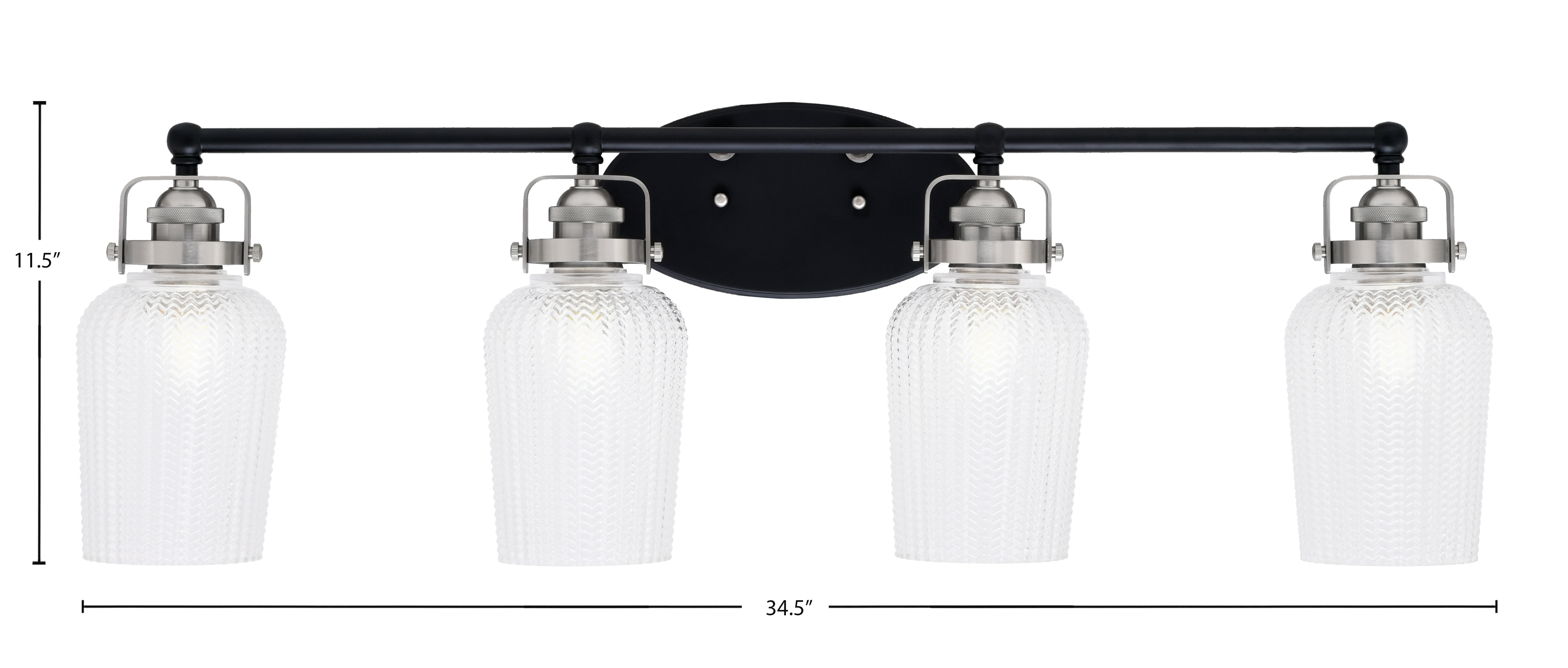 Toltec Lighting 1934-MBBN-4250 Easton 4 Light Bath Bar, Matte Black & Brushed Nickel Finish, 5″ Clear Textured Glass