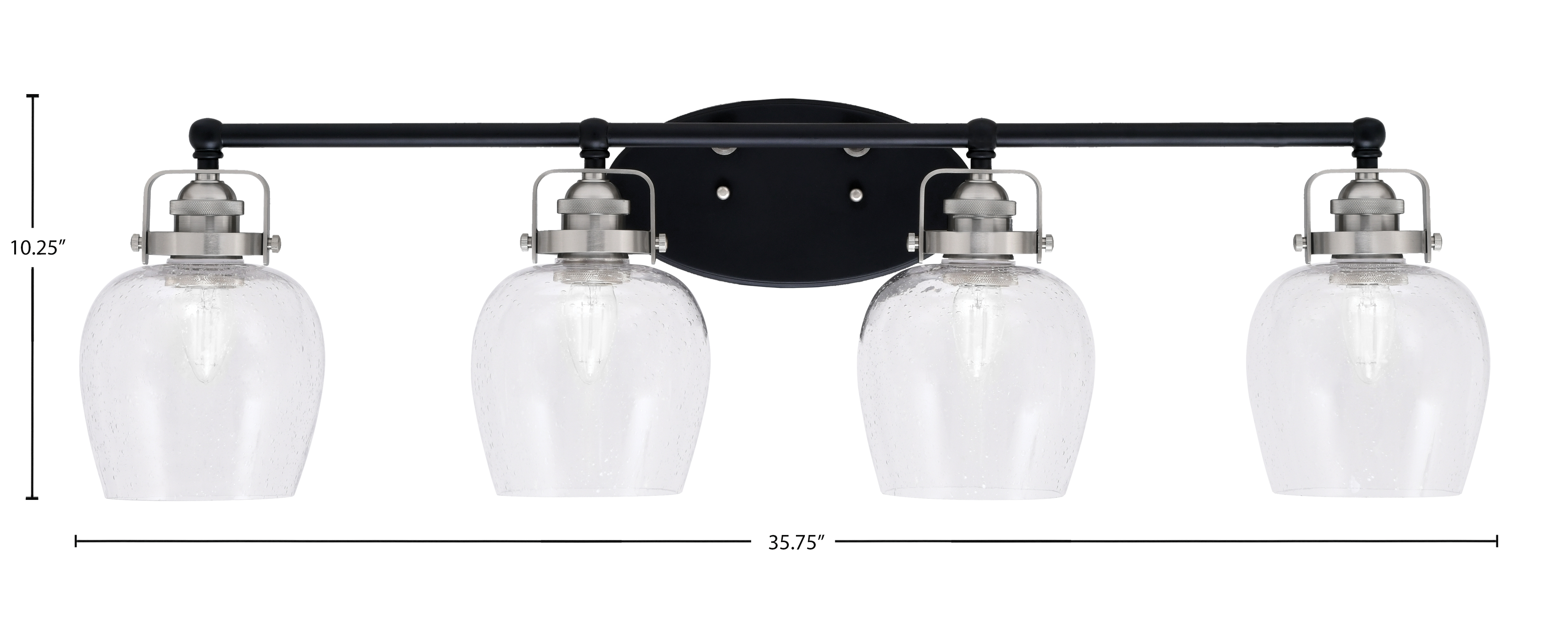 Toltec Lighting 1934-MBBN-4810 Easton 4 Light Bath Bar, Matte Black & Brushed Nickel Finish, 6″ Clear Bubble Glass