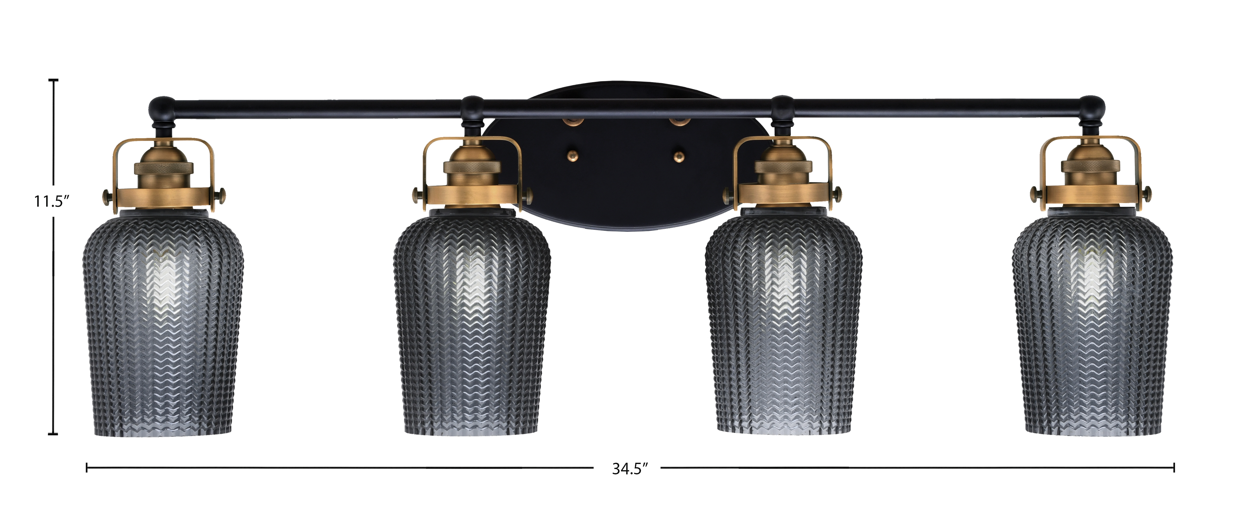 Toltec Lighting 1934-MBBR-4252 Easton 4 Light Bath Bar, Matte Black & Brass Finish, 5″ Smoke Textured Glass