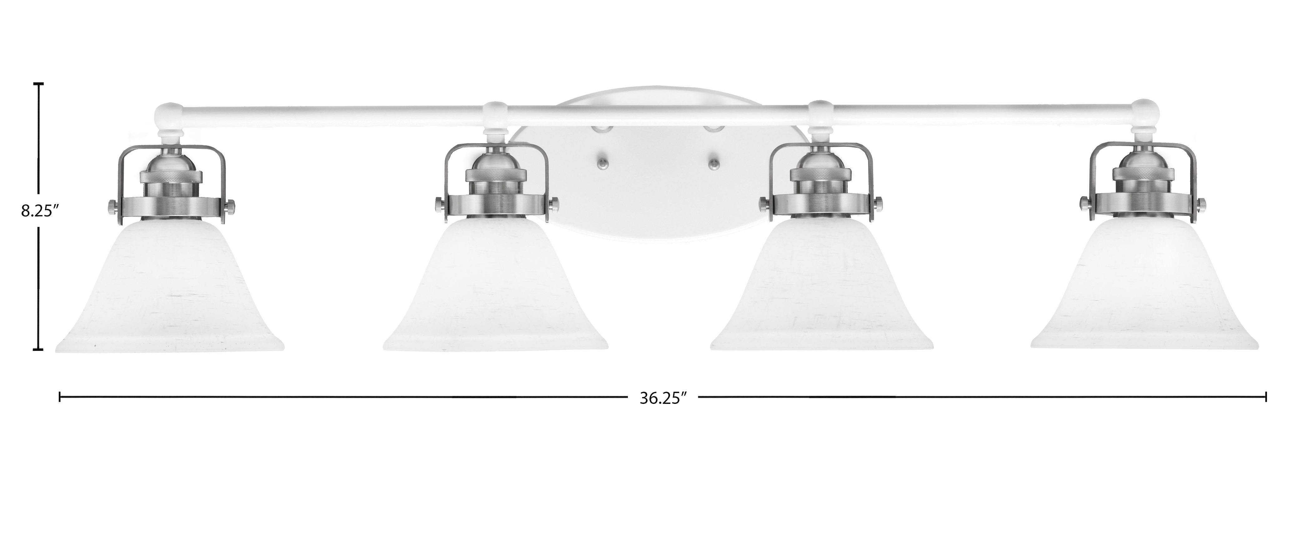 Toltec Lighting 1934-WHBN-311 Easton 4 Light Bath Bar, White & Brushed Nickel Finish, 7″ White Muslin Glass