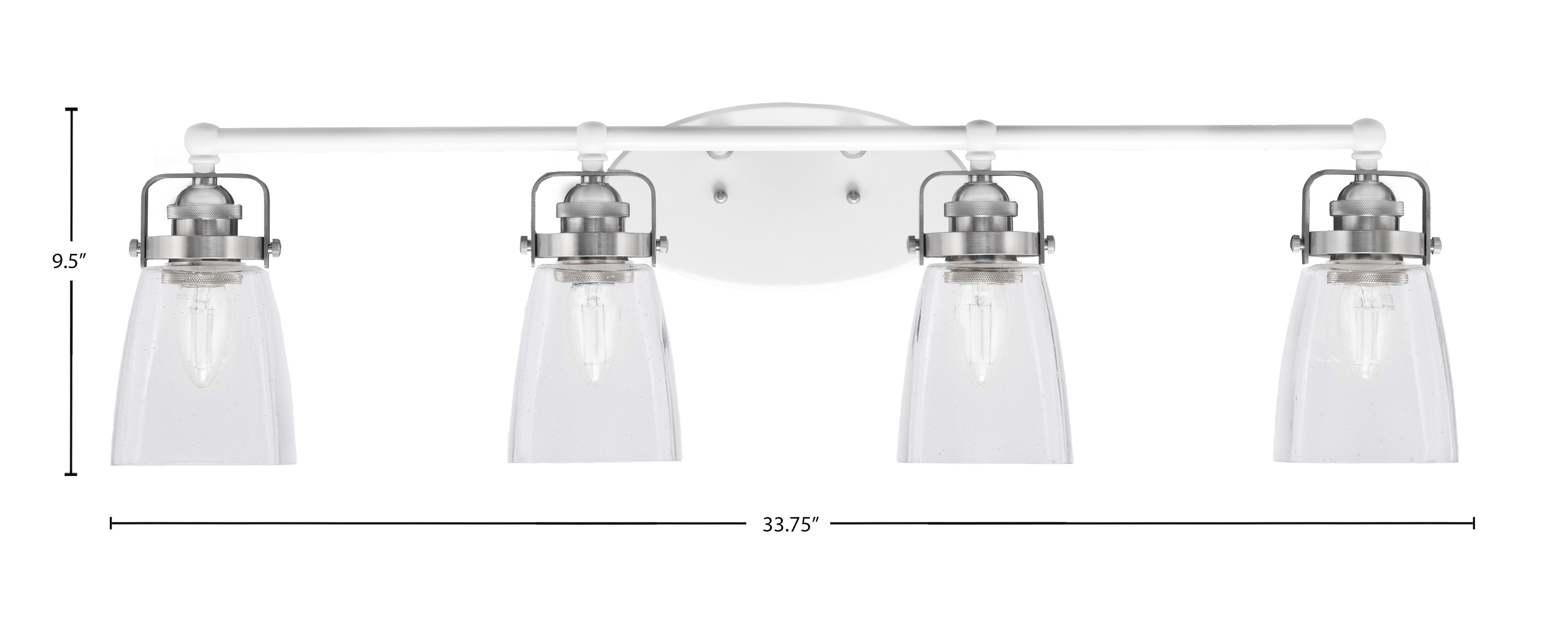 Toltec Lighting 1934-WHBN-461 Easton 4 Light Bath Bar, White & Brushed Nickel Finish, 4.5″ Square Clear Bubble Glass