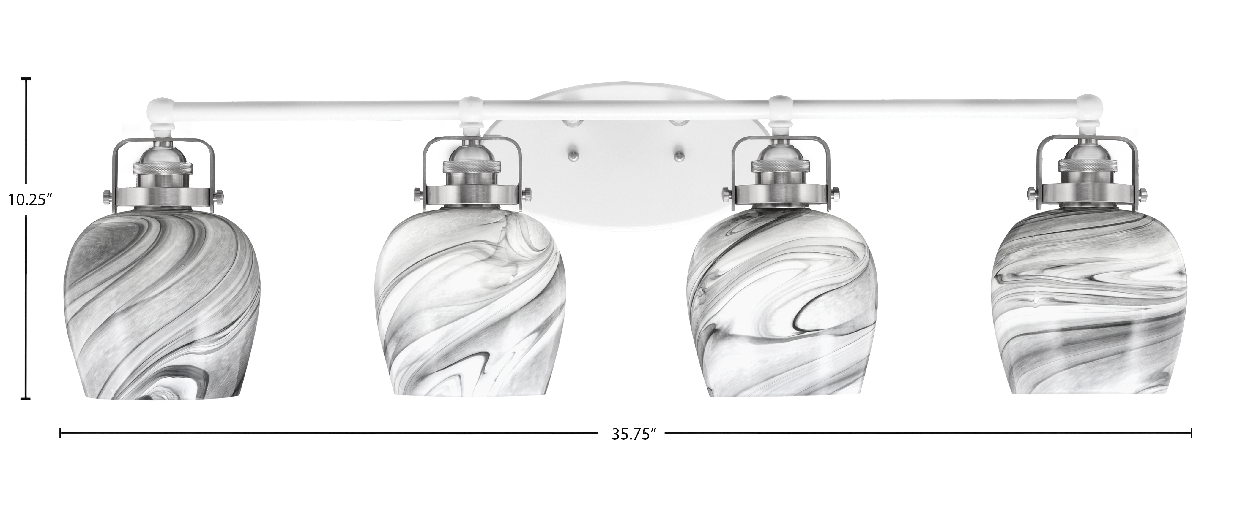 Toltec Lighting 1934-WHBN-4819 Easton 4 Light Bath Bar, White & Brushed Nickel Finish, 6″ Onyx Swirl Glass