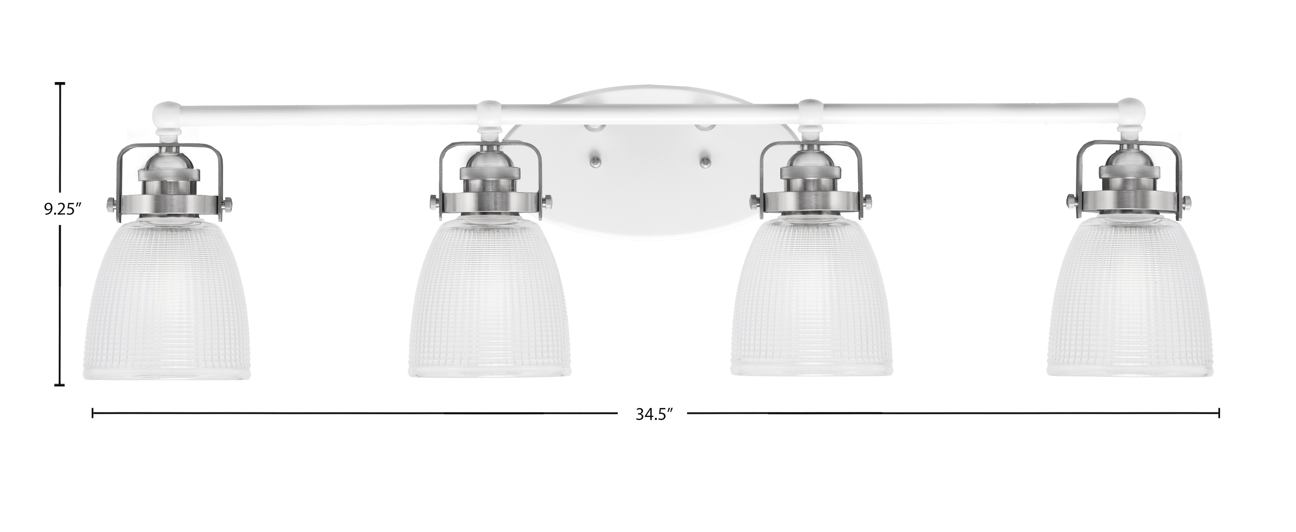 Toltec Lighting 1934-WHBN-500 Easton 4 Light Bath Bar, White & Brushed Nickel Finish, 5″ Clear Ribbed Glass