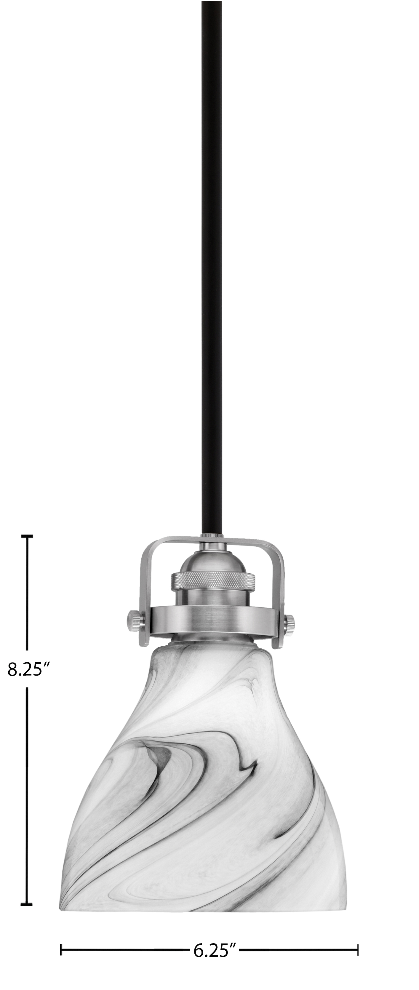 Toltec Lighting 1941-MBBN-4769 Easton Stem Hung Mini Pendant, Matte Black & Brushed Nickel Finish, 6.25″ Onyx Swirl Glass