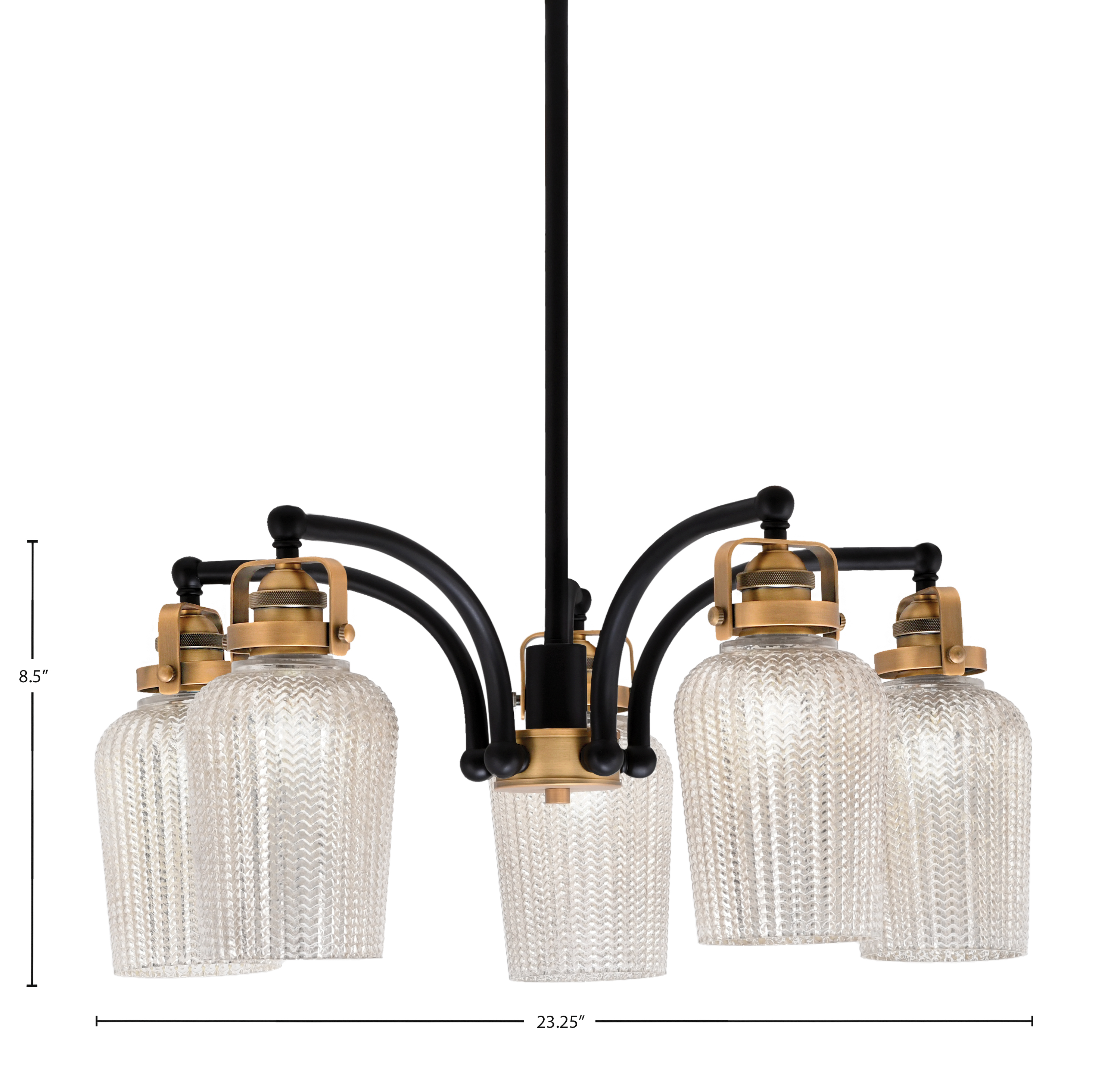 Illuminate Your Space With The Easton 5 Light, Downlight, Chandelier That Radiates Elegance And Style. This Stunning Fixture Features A Beautiful Matte Black And Brass Finish That Complements Any Decor, While The 5″ Silver Textured Glass Provides A Unique And Captivating Glow. Designed With A Hang Straight Swivel, This Chandelier Ensures Perfect Alignment And Easy Installation, Making It A Must-Have For Your Home.