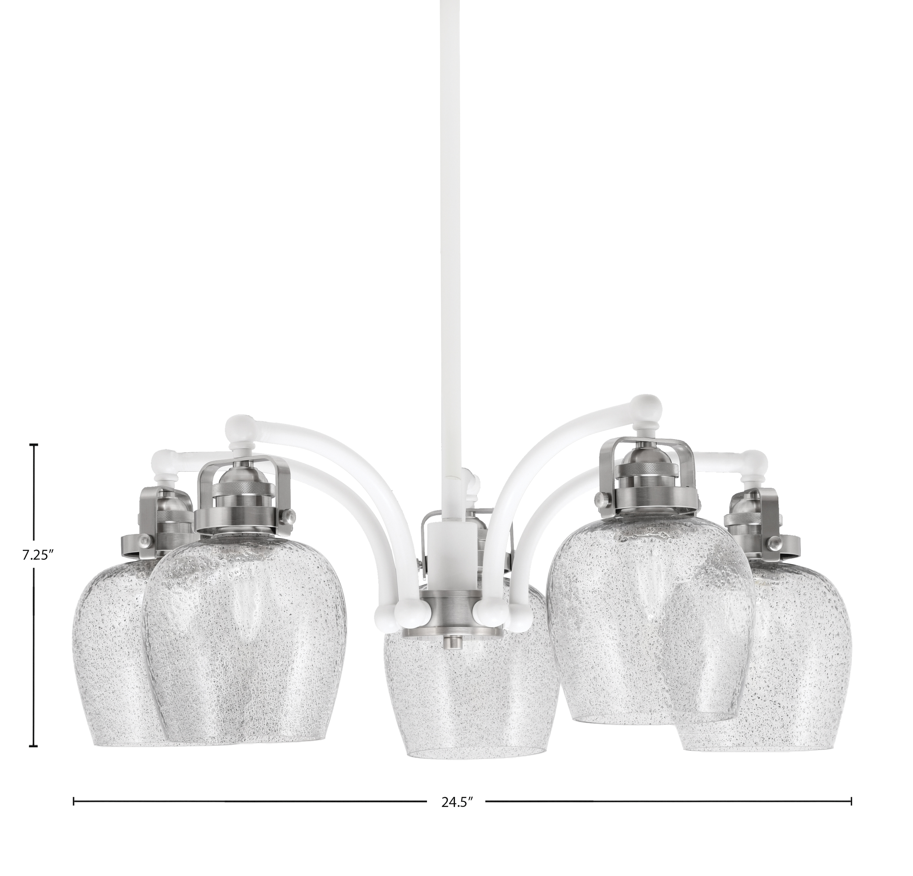 Toltec Lighting 1945-WHBN-4812 Easton 5 Light, Downlight, Chandelier, White & Brushed Nickel Finish, 6″ Smoke Bubble Glass