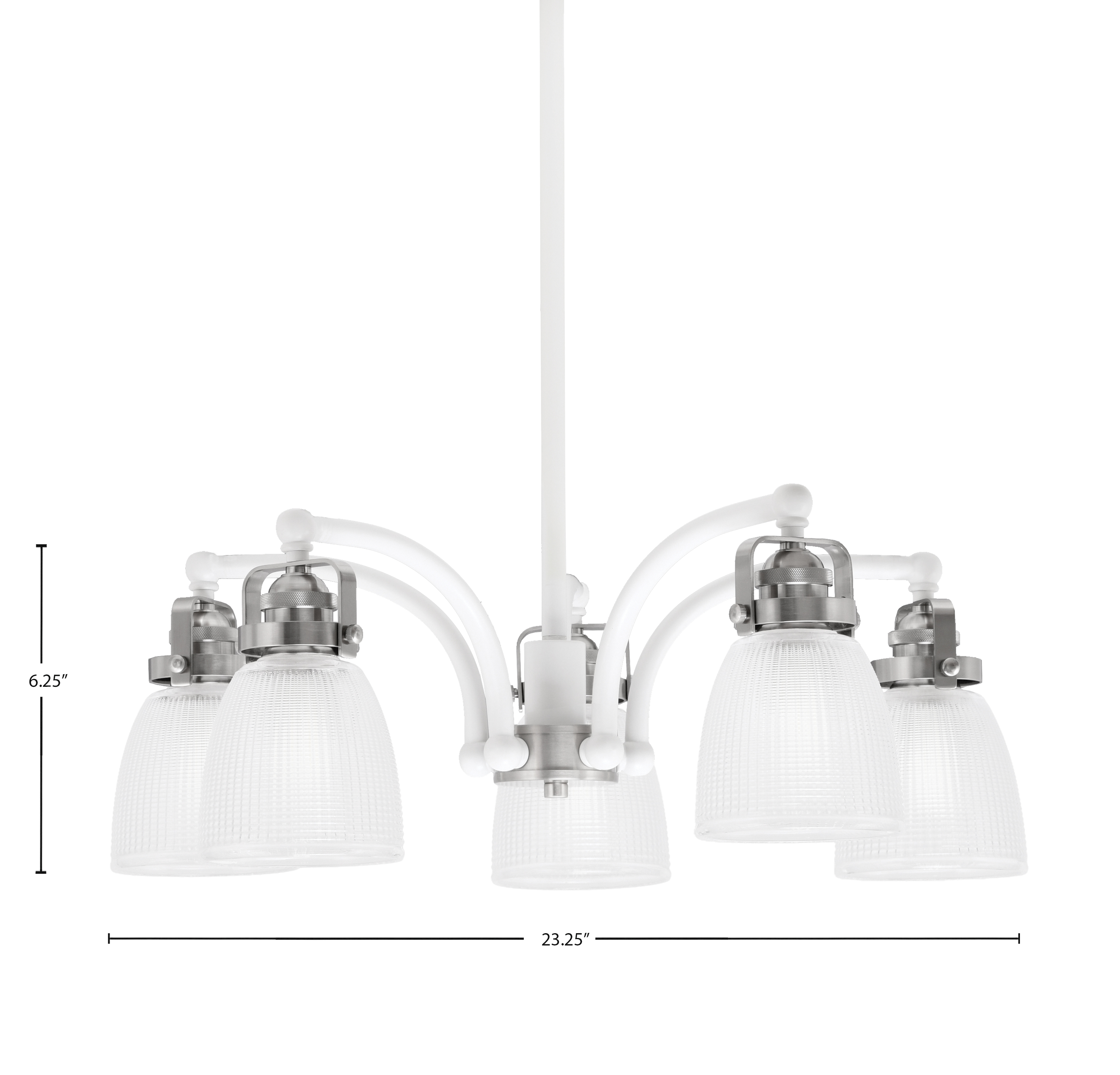 Toltec Lighting 1945-WHBN-500 Easton 5 Light, Downlight, Chandelier, White & Brushed Nickel Finish, 5″ Clear Ribbed Glass