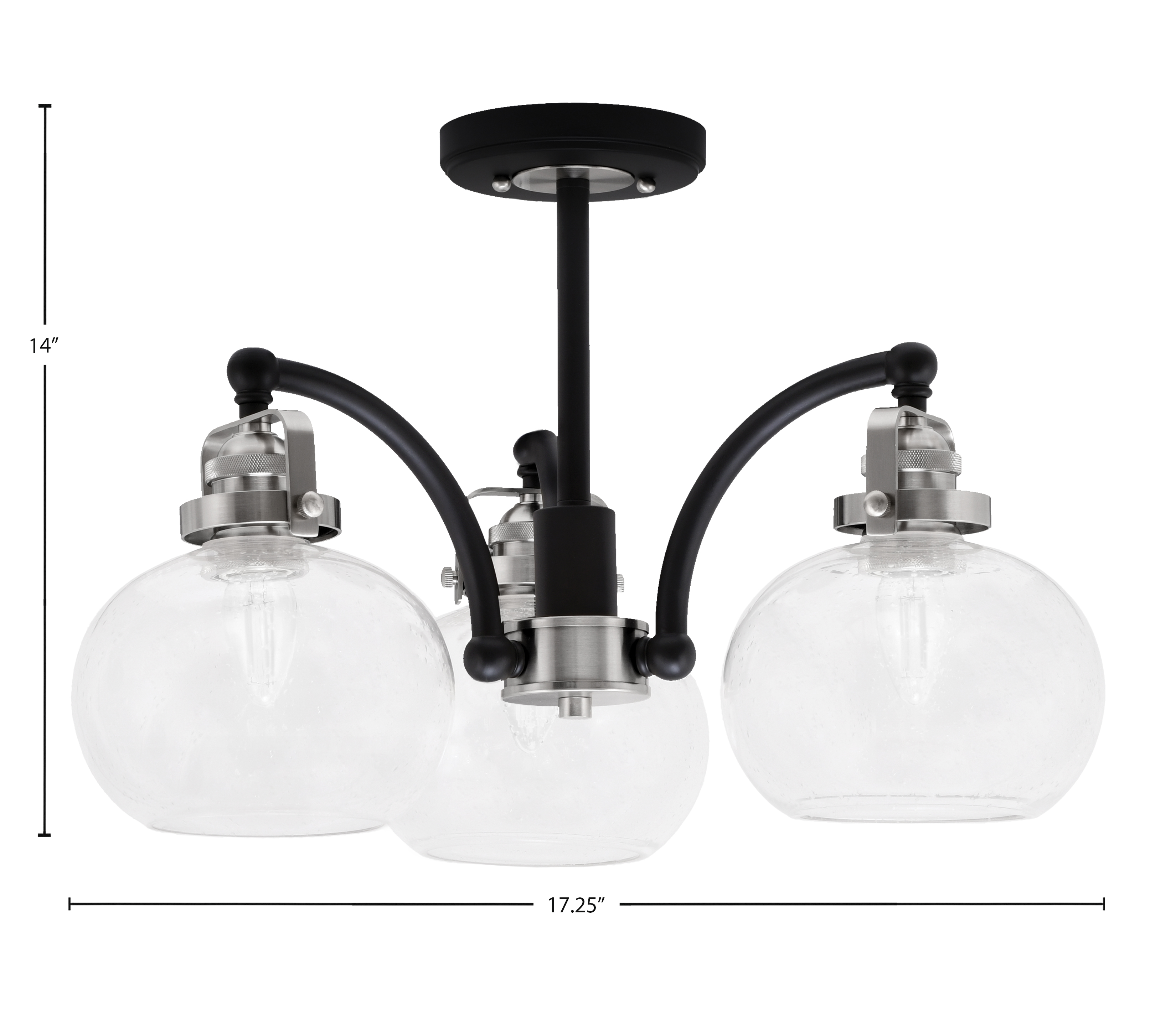 Toltec Lighting 1947-MBBN-202 Easton 3 Light Semi-Flush, Matte Black & Brushed Nickel Finish, 7″ Clear Bubble Glass