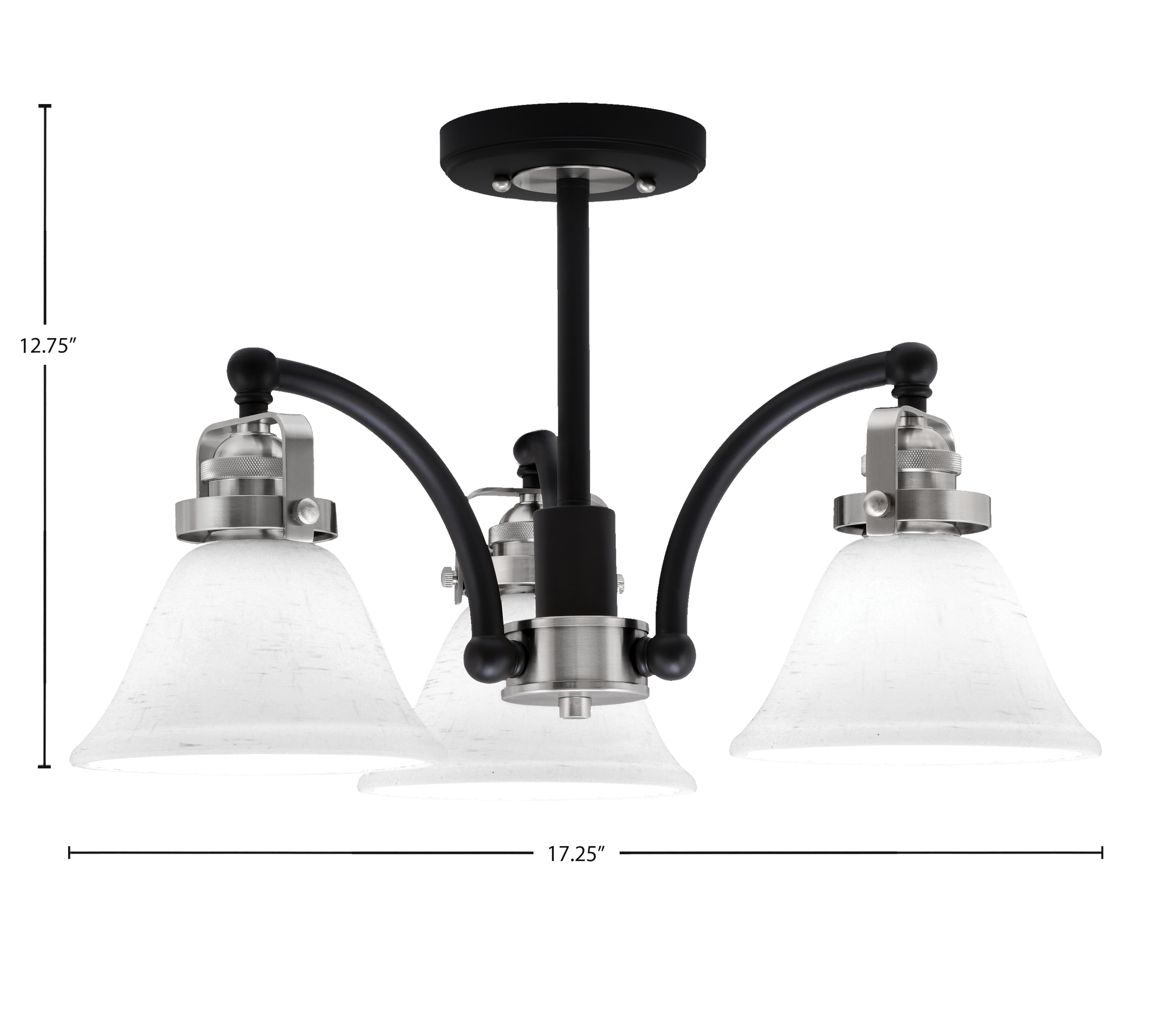 Toltec Lighting 1947-MBBN-311 Easton 3 Light Semi-Flush, Matte Black & Brushed Nickel Finish, 7″ White Muslin Glass