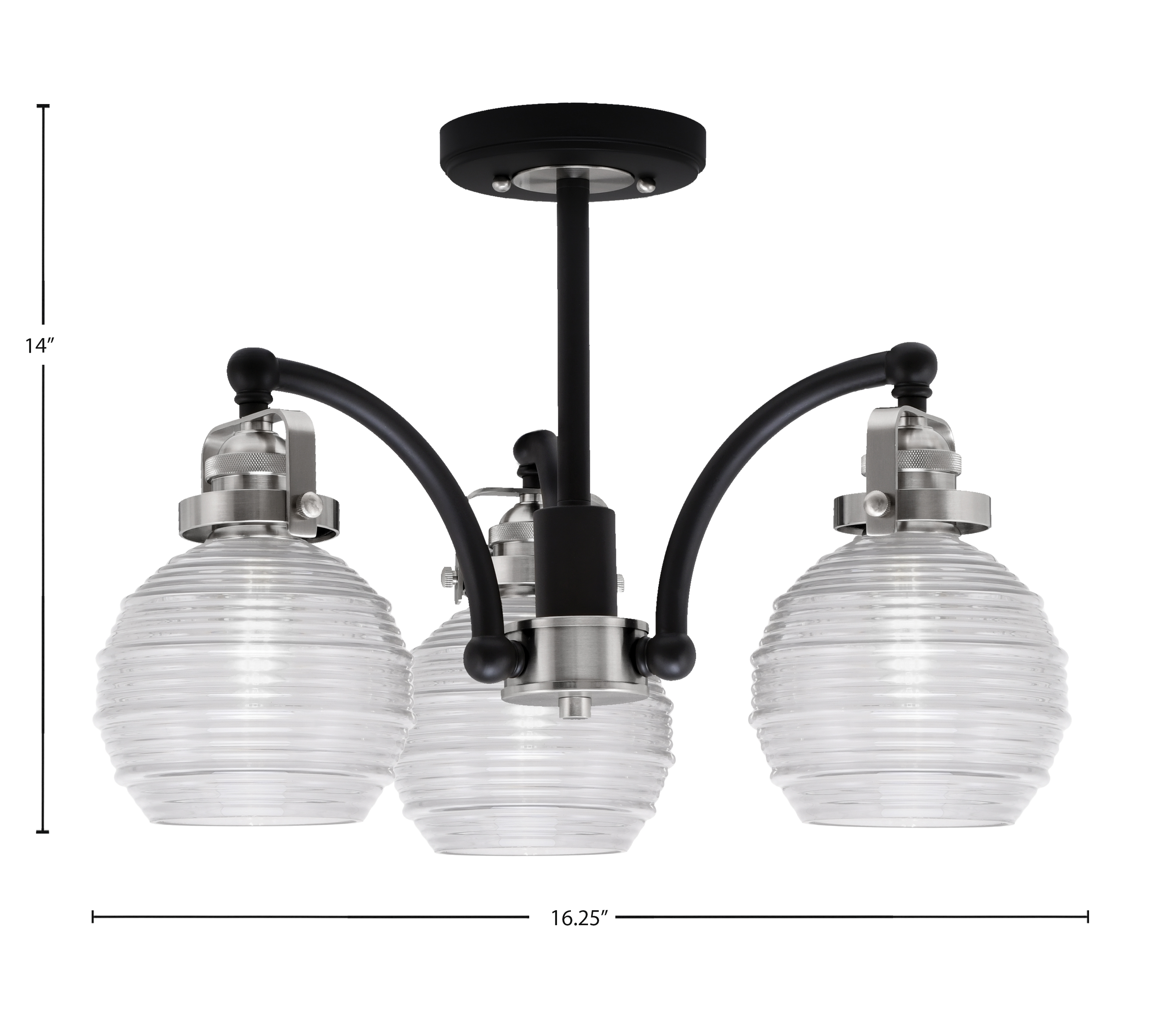 Toltec Lighting 1947-MBBN-5110 Easton 3 Light Semi-Flush, Matte Black & Brushed Nickel Finish, 6″ Clear Ribbed Glass