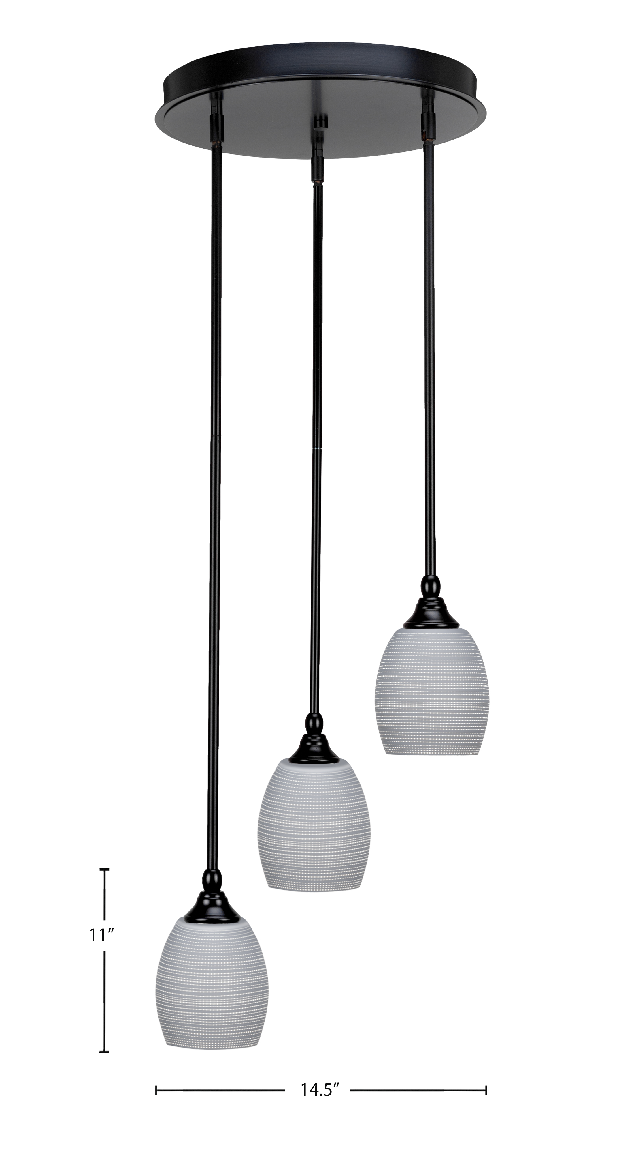 Toltec Lighting 2143-MB-4022 Empire 3 Light Stem Hung Cluster Pendalier, Matte Black Finish, 5″ Gray Matrix Glass
