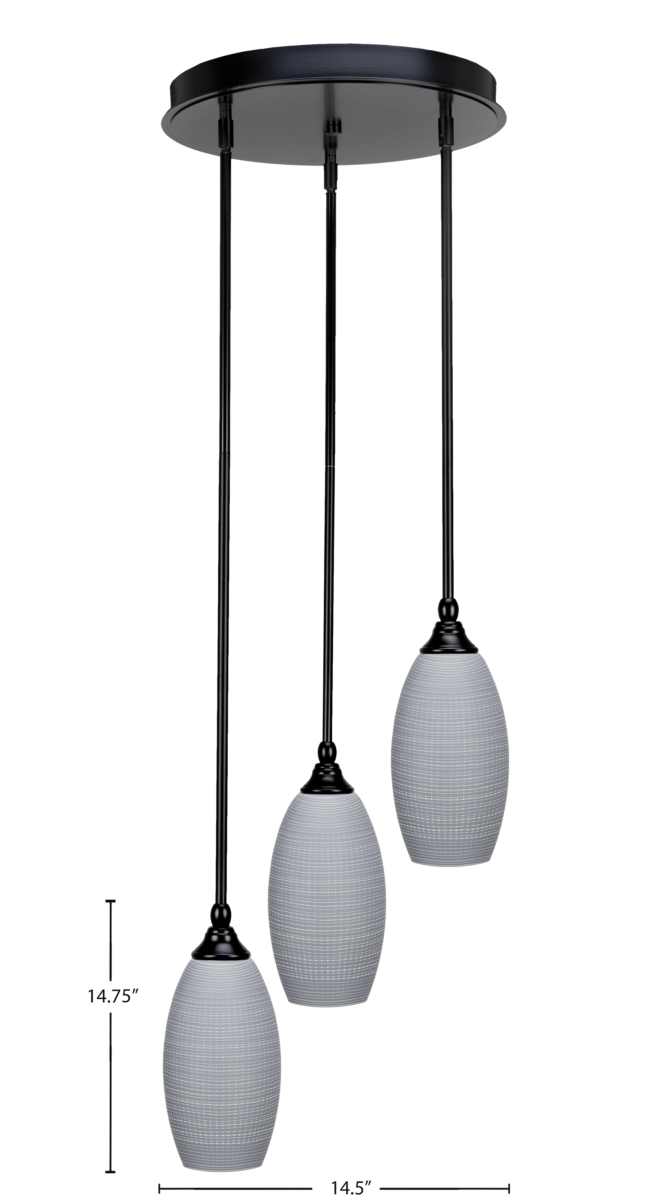 Toltec Lighting 2143-MB-4042 Empire 3 Light Stem Hung Cluster Pendalier, Matte Black Finish, 5.5″ Gray Matrix Glass