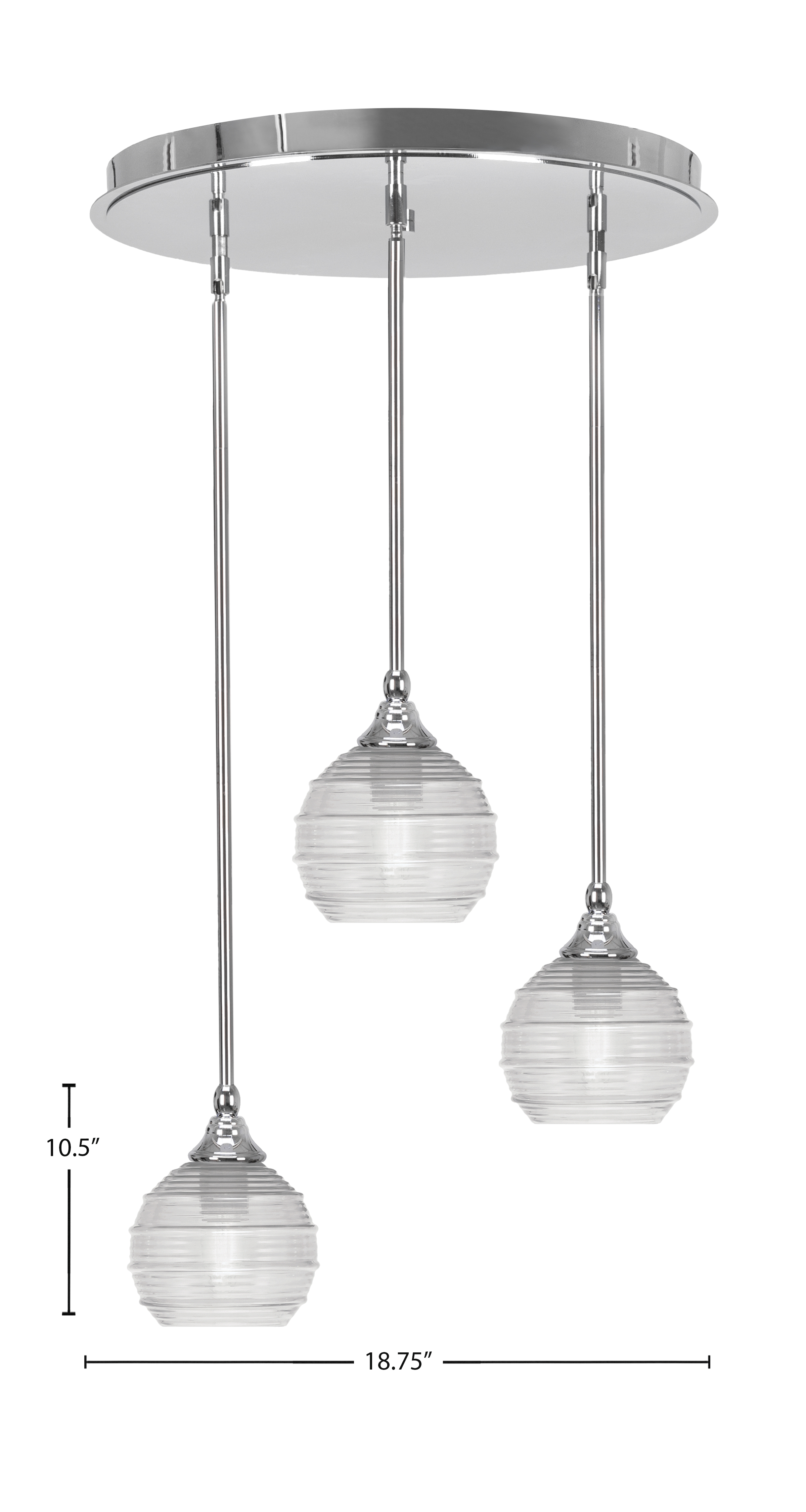 Toltec Lighting 2183-CH-5110 Empire 3 Light Stem Hung Cluster Pendalier, Chrome Finish, 6″ Clear Ribbed Glass