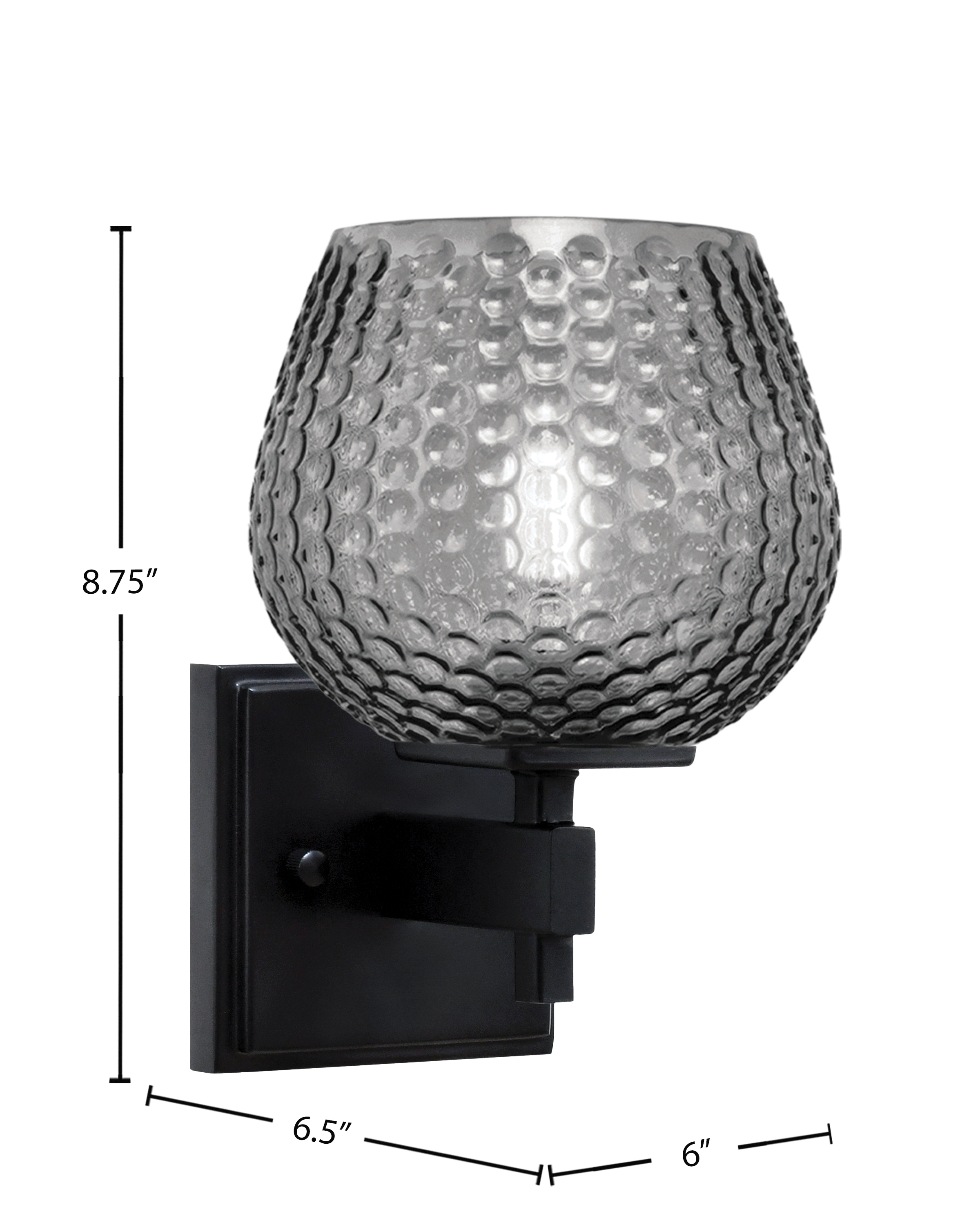 Toltec Lighting 2311-GP-4602 Corbin Wall Sconce, Matte Black Finish, 6″ Smoke Textured Glass