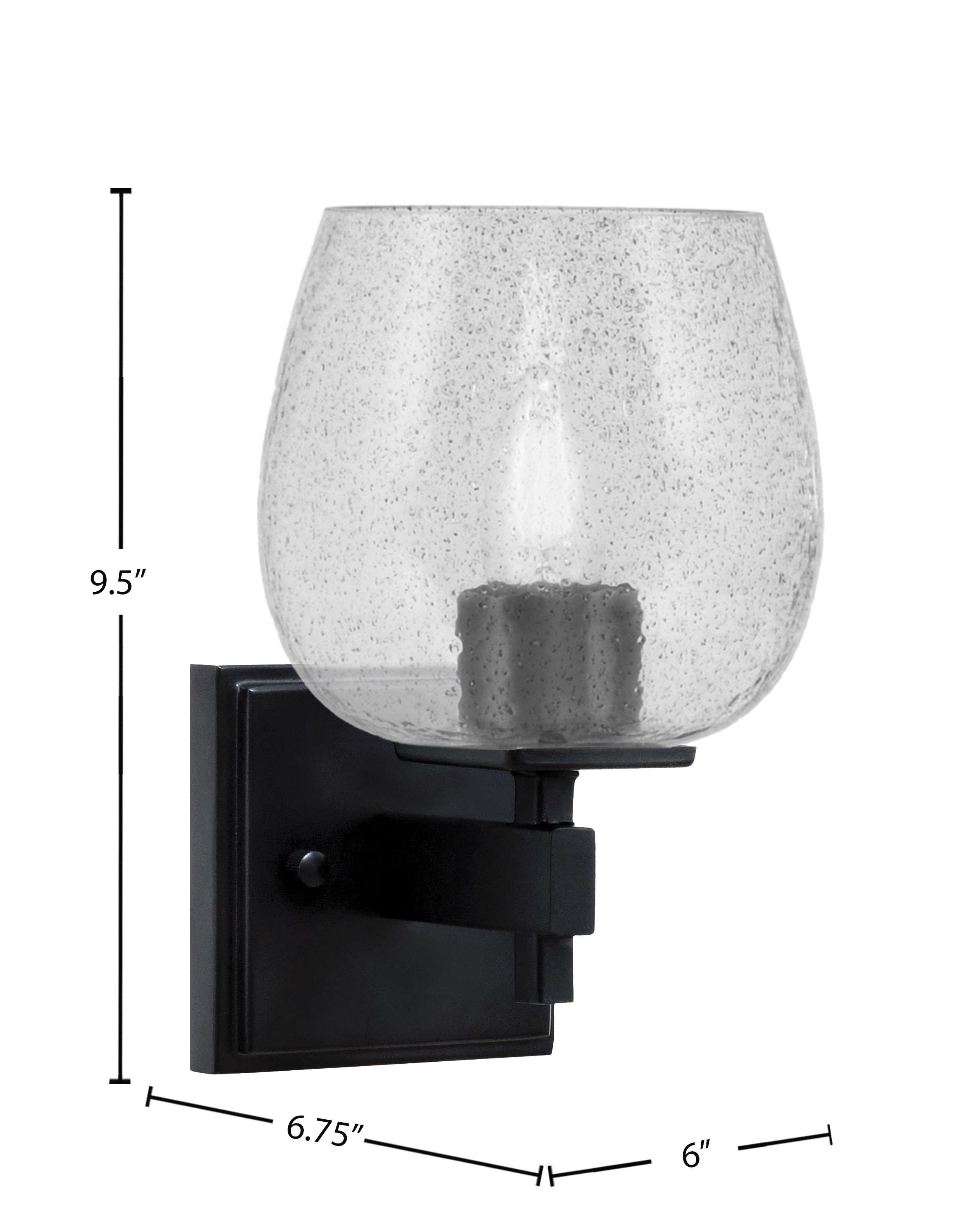 Toltec Lighting 2311-GP-4812 Corbin Wall Sconce, Matte Black Finish, 6″ Smoke Bubble Glass