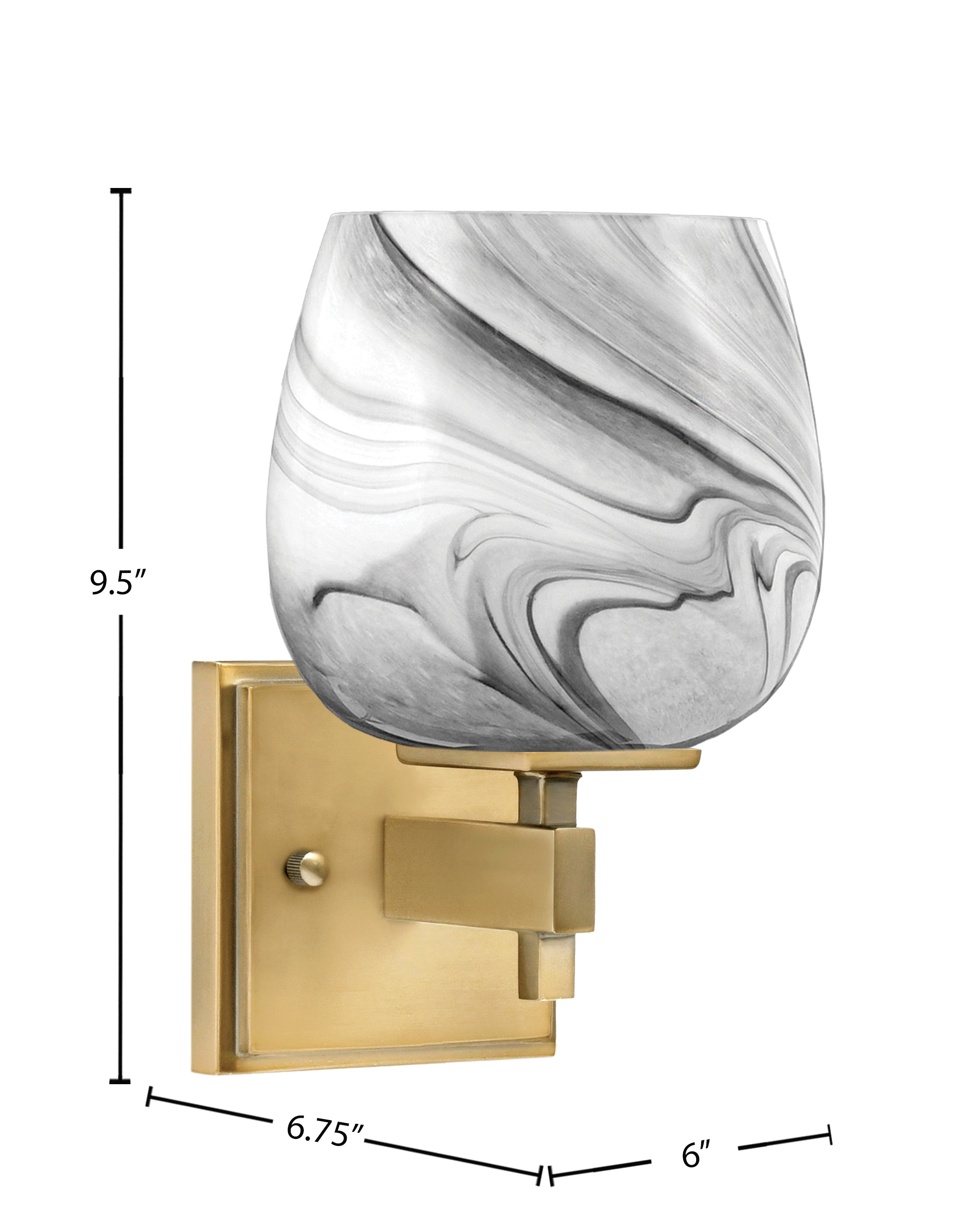 Make a bold design statement with the Corbin Wall Sconce. Featuring a rich New Age Brass finish and a striking 6″ onyx swirl glass shade, this fixture brings dramatic contrast and artistic flair to any space. The swirling glass pattern creates visual depth and diffuses light with a warm, inviting glow.