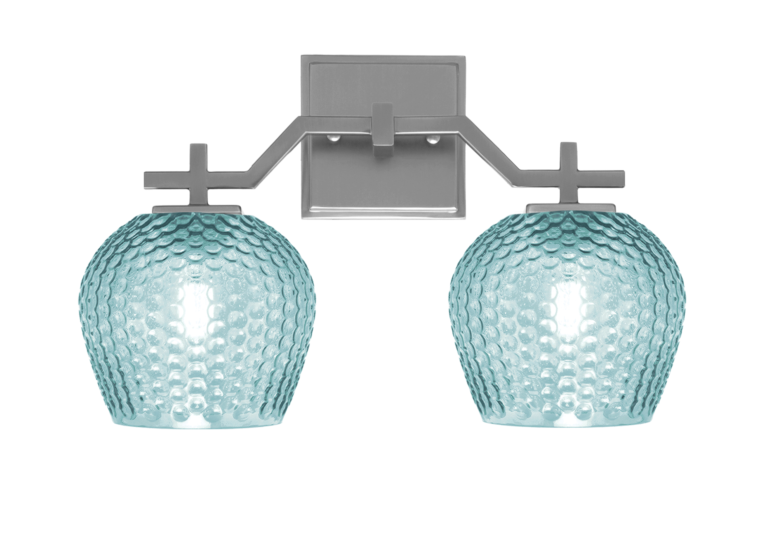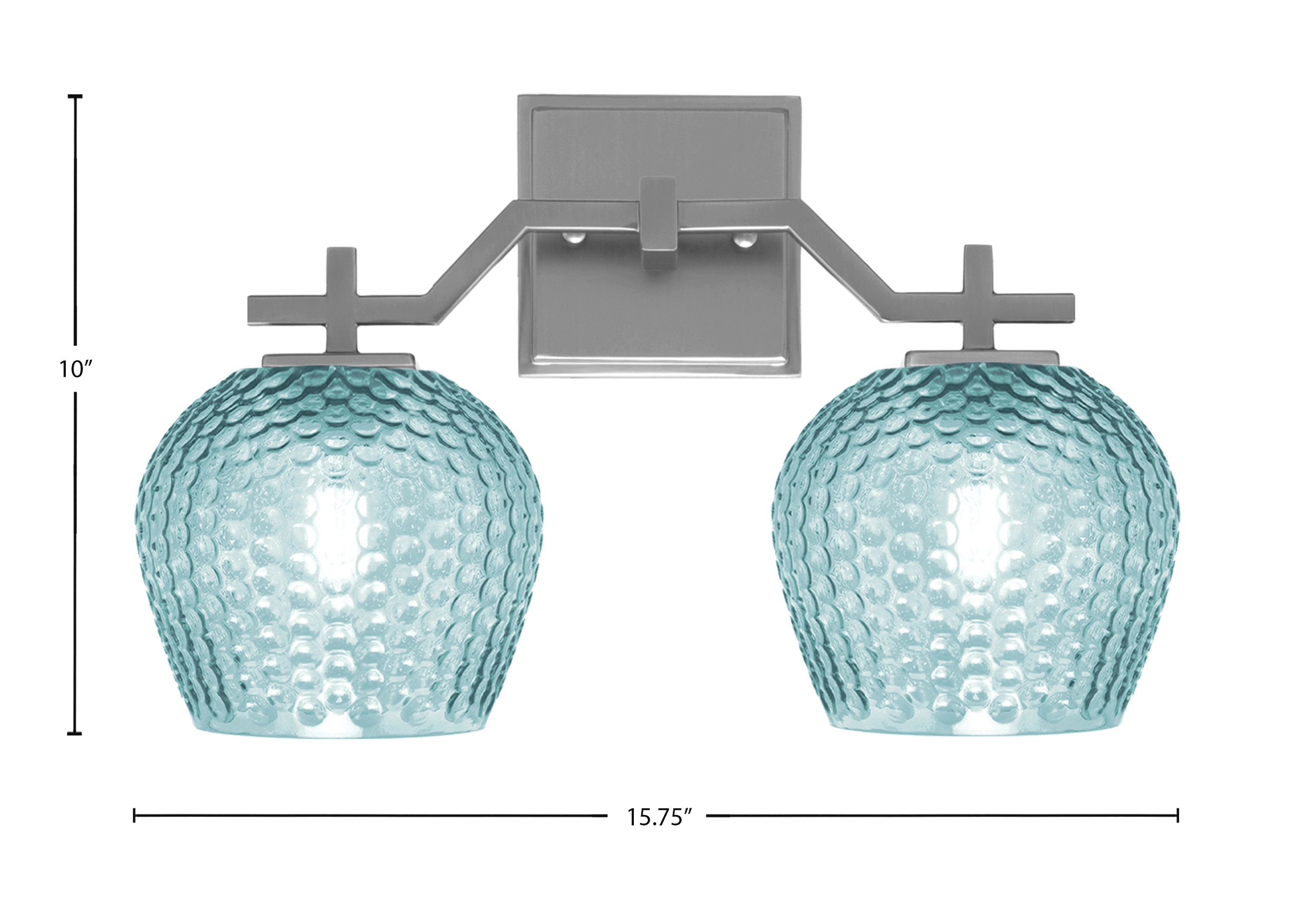 Toltec Lighting 2312-GP-4605 Corbin 2 Light Bath Bar, Graphite Finish, 6″ Turquoise Textured Glass