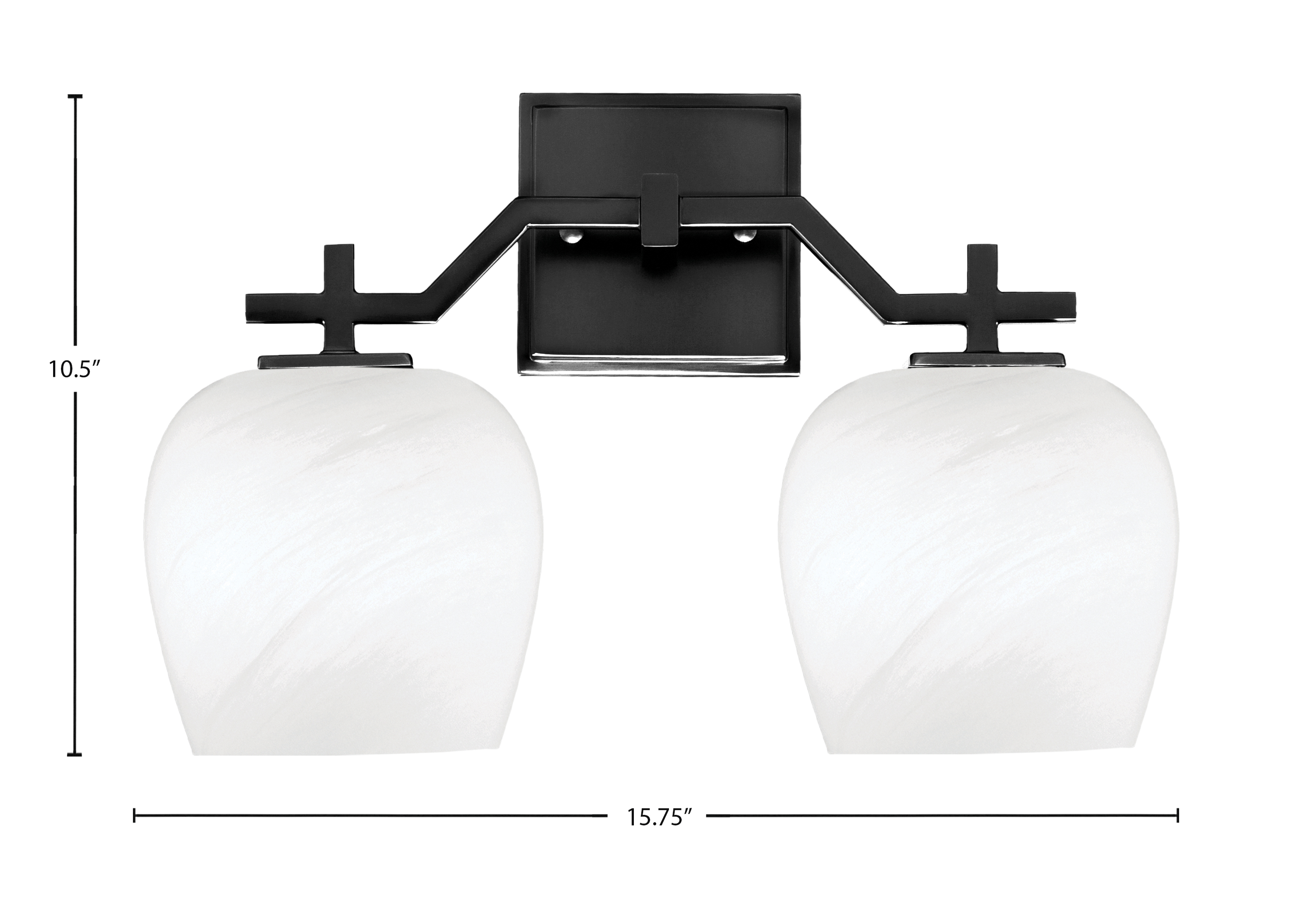 Toltec Lighting 2312-MB-4811 Corbin 2 Light Bath Bar, Matte Black Finish, 6″ White Marble Glass