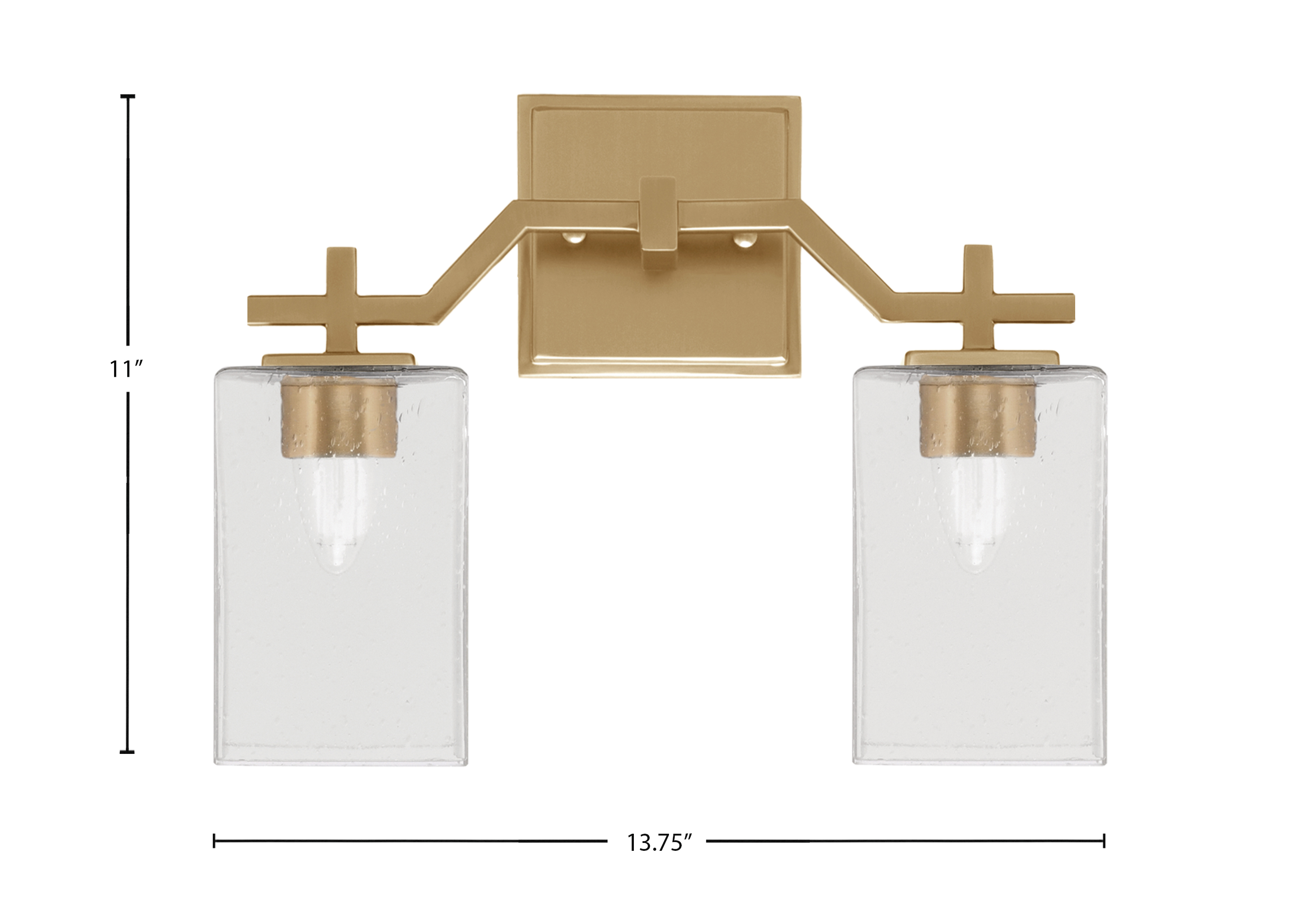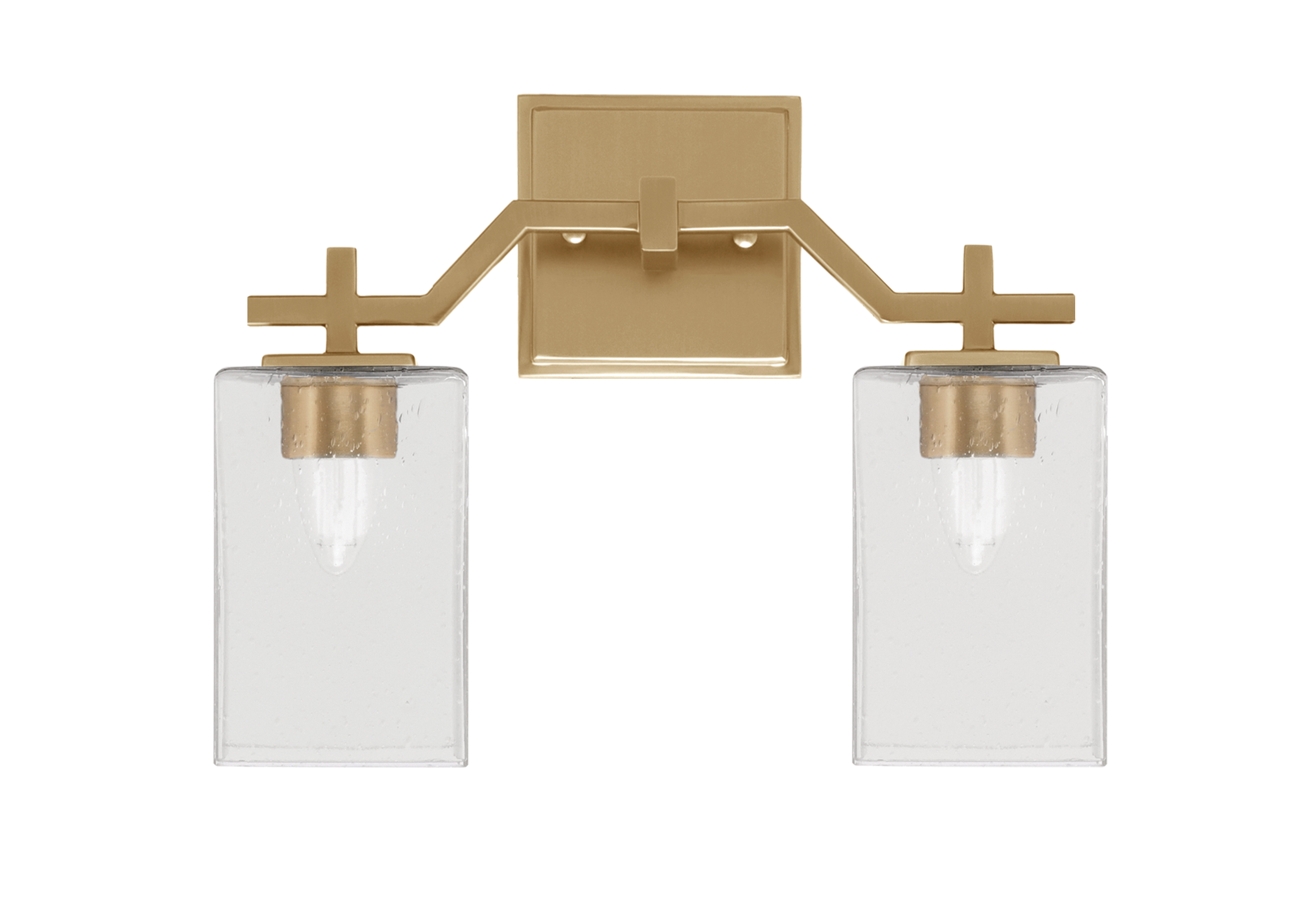 Toltec Lighting 2312-NAB-530 Corbin 2 Light Bath Bar, New Age Brass Finish, 4″ Square Clear Bubble Glass