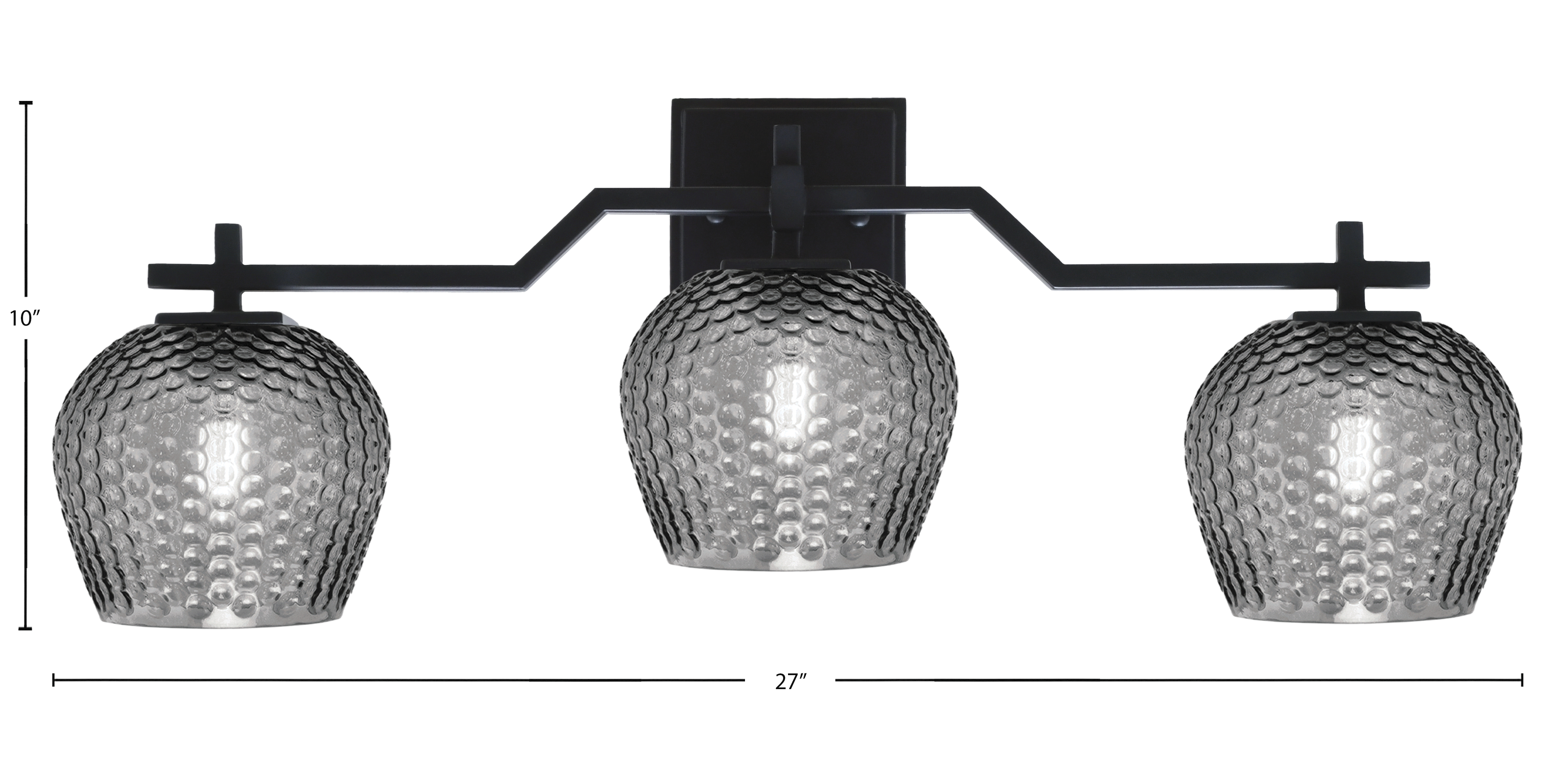 Toltec Lighting 2313-MB-4602 Corbin 3 Light Bath Bar, Matte Black Finish, 6″ Smoke Textured Glass