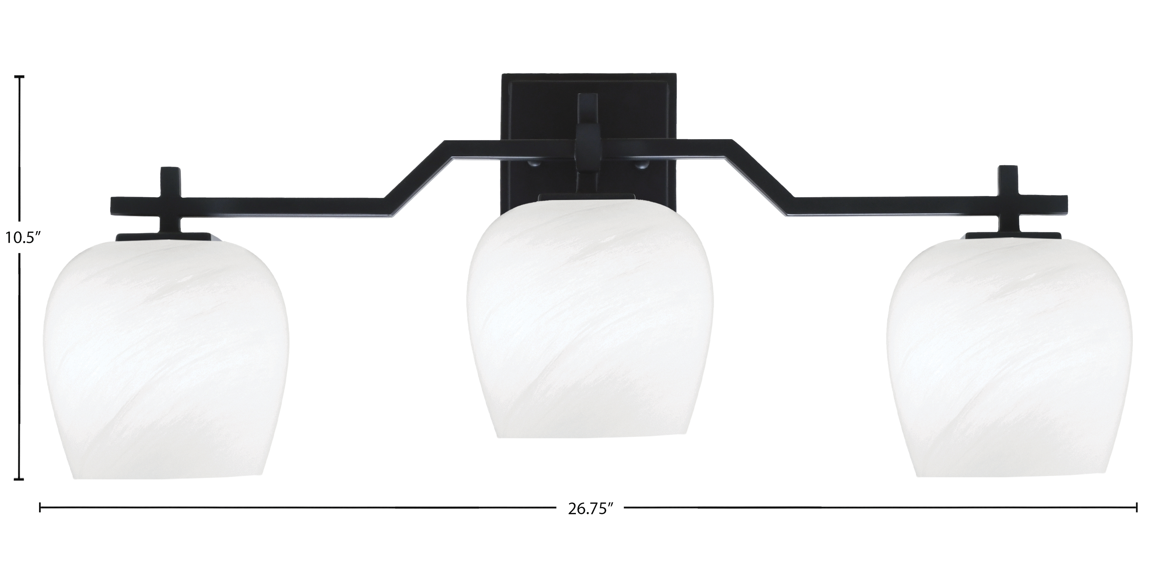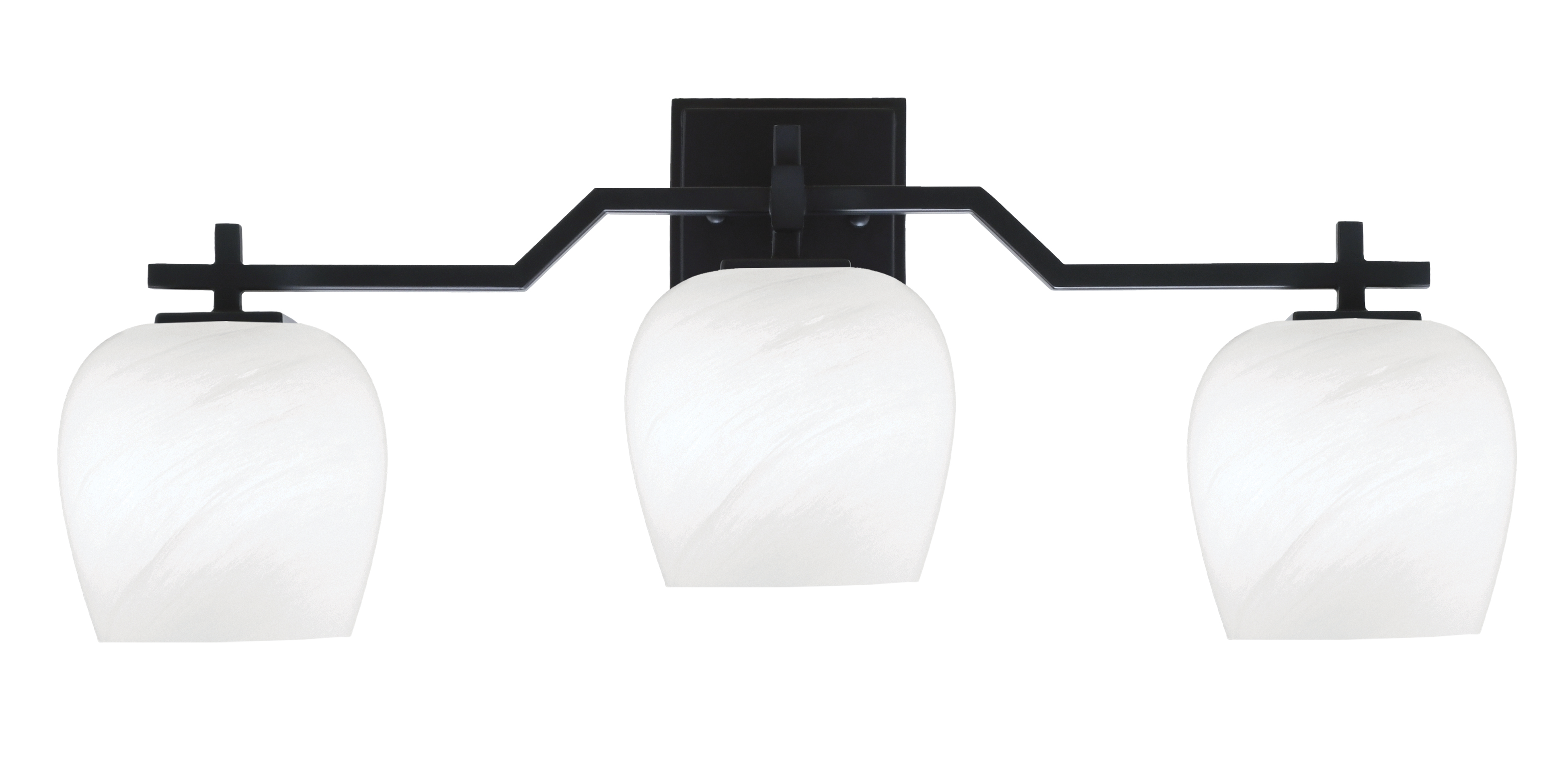 Toltec Lighting 2313-MB-4811 Corbin 3 Light Bath Bar, Matte Black Finish, 6″ White Marble Glass